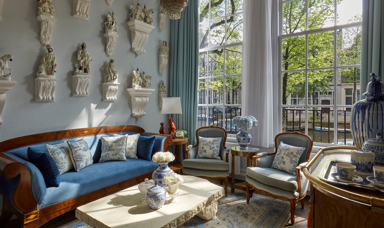 Οι αριθμοί και η εξωτερική εικόνα αυτής της «αποκλειστικής» γειτονιάς πλάι στα κανάλια της ολλανδικής πρωτεύουσας είναι εξίσου εντυπωσιακά: όχι λιγότερα από 25 ανακαινισμένα σπίτια των 17ου και 18ου αιώνα, έχουν ενωθεί για να σχηματίσουν ένα ιστορικό ξενοδοχείων 5 αστέρων με εντυπωσιακή πρόσοψη σαν κολλάζ κτηρίων της Χρυσής Ολλανδικής Εποχής. Πίσω από τις μεγαλοπρεπείς διπλές πόρτες του Pulitzer Amsterdam βασιλεύει η πεμπτουσία 4 αιώνων κομψότητας και αποκαλύπτεται ένα ευρύχωρο και ακαταμάχητα γοητευτικό σκηνικό, όπου ένας λαβύρινθος από διαδρόμους γεμάτους από έργα τέχνης, συνδέει τα ξεχωριστής διακόσμησης, διαρρύθμισης και θέας 223 δωμάτια και σουίτες. Με τον ίδιο τρόπο που το κτηριακό συγκρότημα φωλιάζει πλάι στα διάσημα κανάλια Prinsengracht και Keizersgracht στην καρδιά του Άμστερνταμ, γίνεται το ίδιο μια φωλιά ιδανική για χαλάρωση στα σαλόνια με τα πολυτελή βελούδινα καθίσματα, παρέα με ένα cocktail από το βραβευμένο μπαρ ή στην αυλή που φιλοξενεί το στιλάτο εστιατόριο.