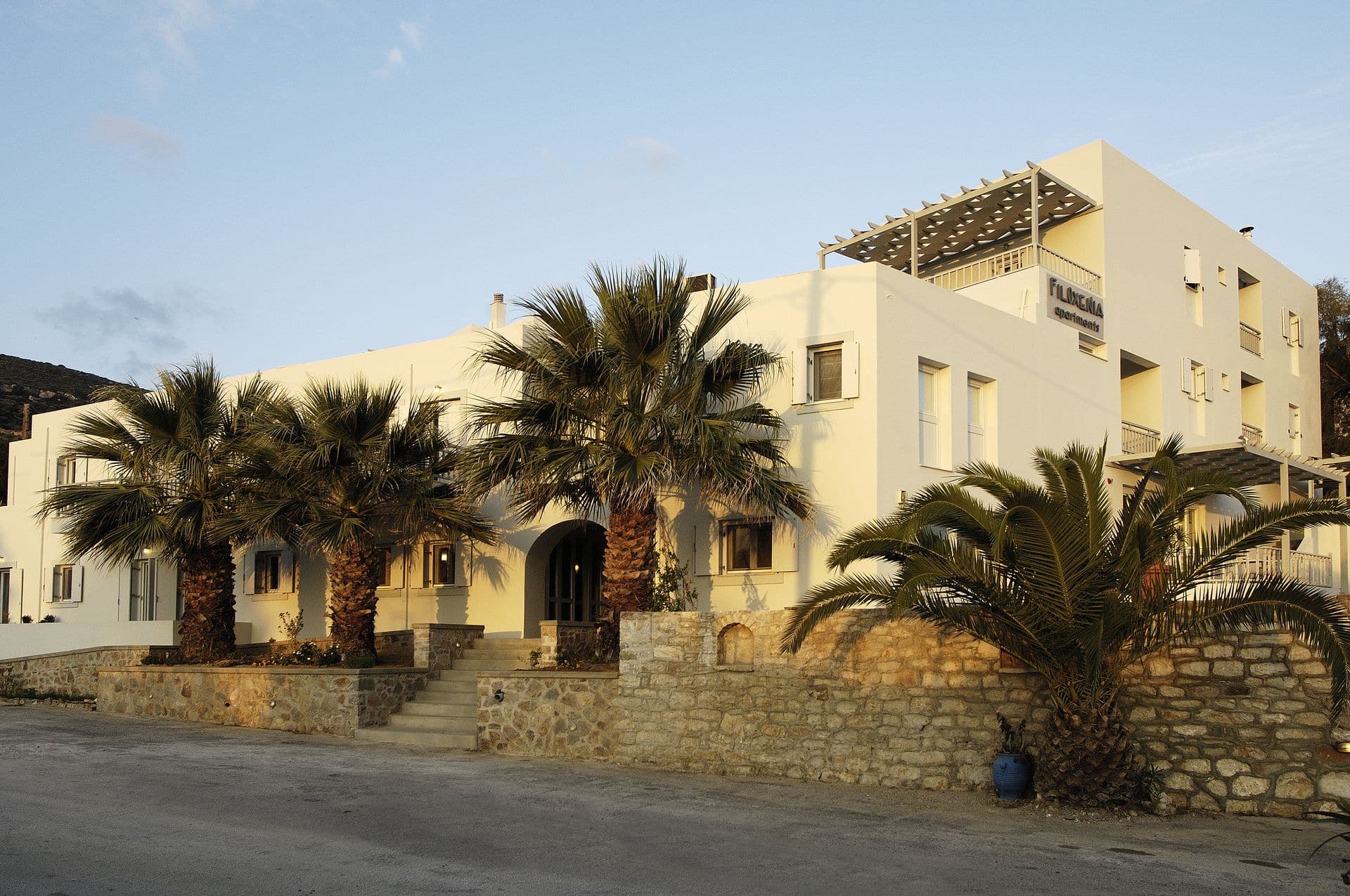 Filoxenia. Σε αιγαιοπελαγίτικο στυλ, με 25 διαμερίσματα και στούντιο -όλα διαφορετικά και μοντέρνα διακοσμημένα, με ντιζάιν αντικείμενα. Υπάρχει πισίνα και pool bar.
