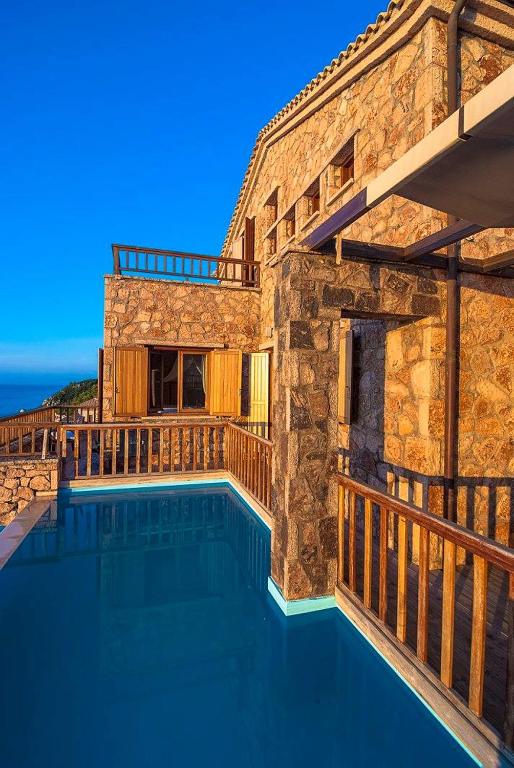 Πολυτελείς πετρόκτιστες βίλες στη Βαυκερή και το Σπανοχώρι, με θέα προς το Ιόνιο.
