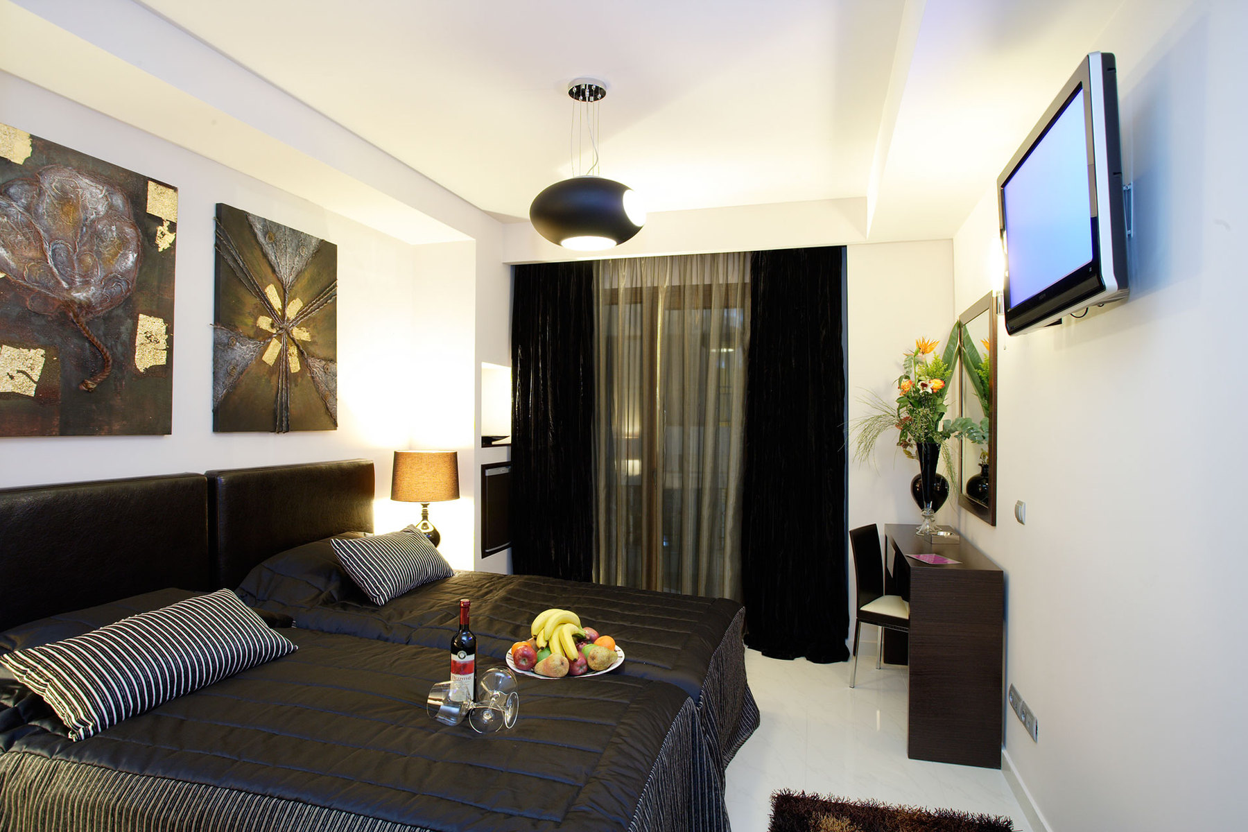 Η διακόσμηση εντυπωσιάζει, με μεγάλα παράθυρα που λούζουν τους χώρους με φυσικό φως, ευρύχωρα μπάνια, king size κρεβάτια και τη θαλπωρή του τζακιού, δημιουργώντας την απόλυτη ατμόσφαιρα χαλάρωσης και πολυτέλειας. Στο ισόγειο του ξενοδοχείου βρίσκεται η σάλα, όπου σερβίρεται σπιτικό πρωινό και πιάτα εμπνευσμένα από την ελληνική κουζίνα, όλα επιμελημένα από τον σεφ.