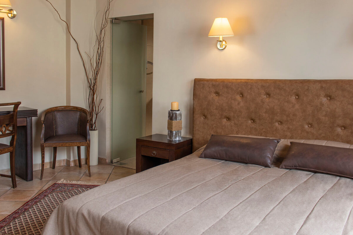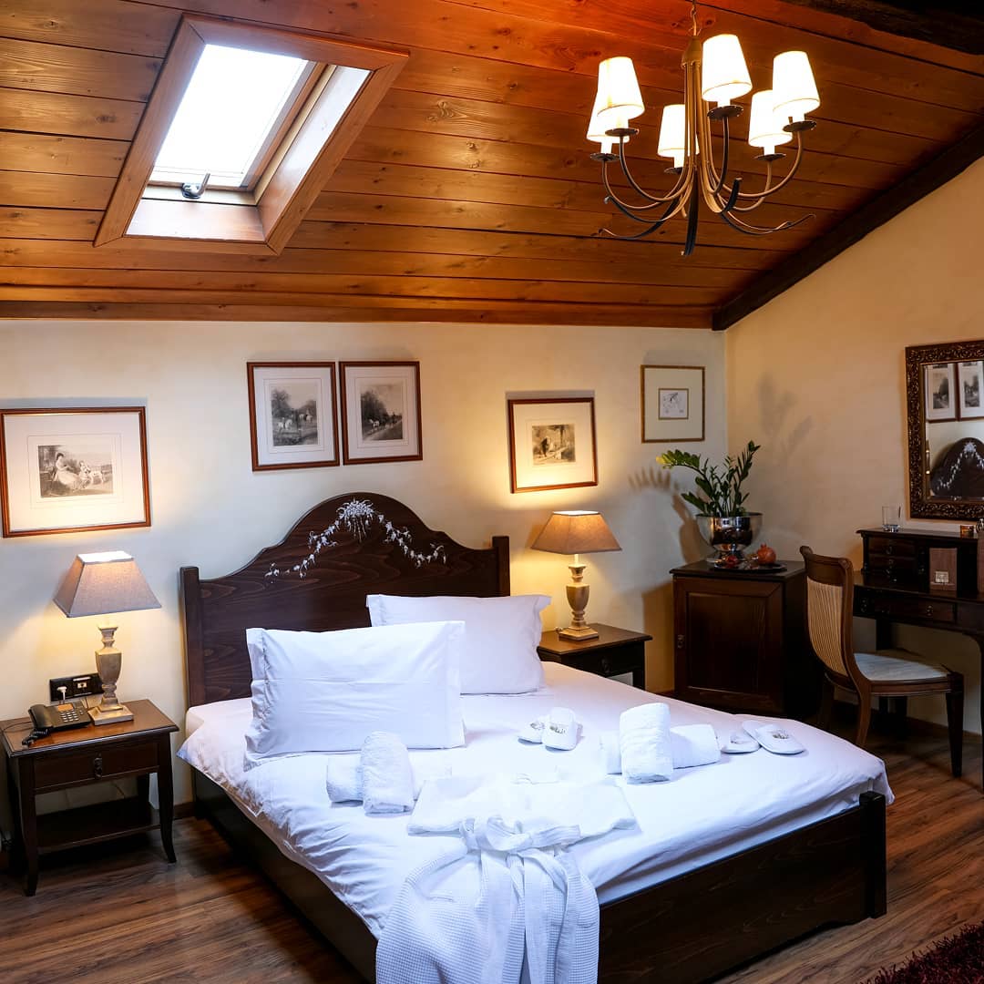Κάθε δωμάτιο έχει το δικό του όνομα και ξεχωρίζει για την παραδοσιακή αισθητική του, την ευρύχωρη διαρρύθμιση και τη ζεστασιά του τζακιού, προσφέροντας στιγμές χαλάρωσης και ηρεμίας. Στην ήσυχη βεράντα και στο καφέ του ξενοδοχείου, οι επισκέπτες μπορούν να απολαύσουν ένα πλήρες πρωινό, με χειροποίητες πίτες και τοπικά τυριά, όλα βασισμένα στην πλούσια γαστρονομική παράδοση της περιοχής.