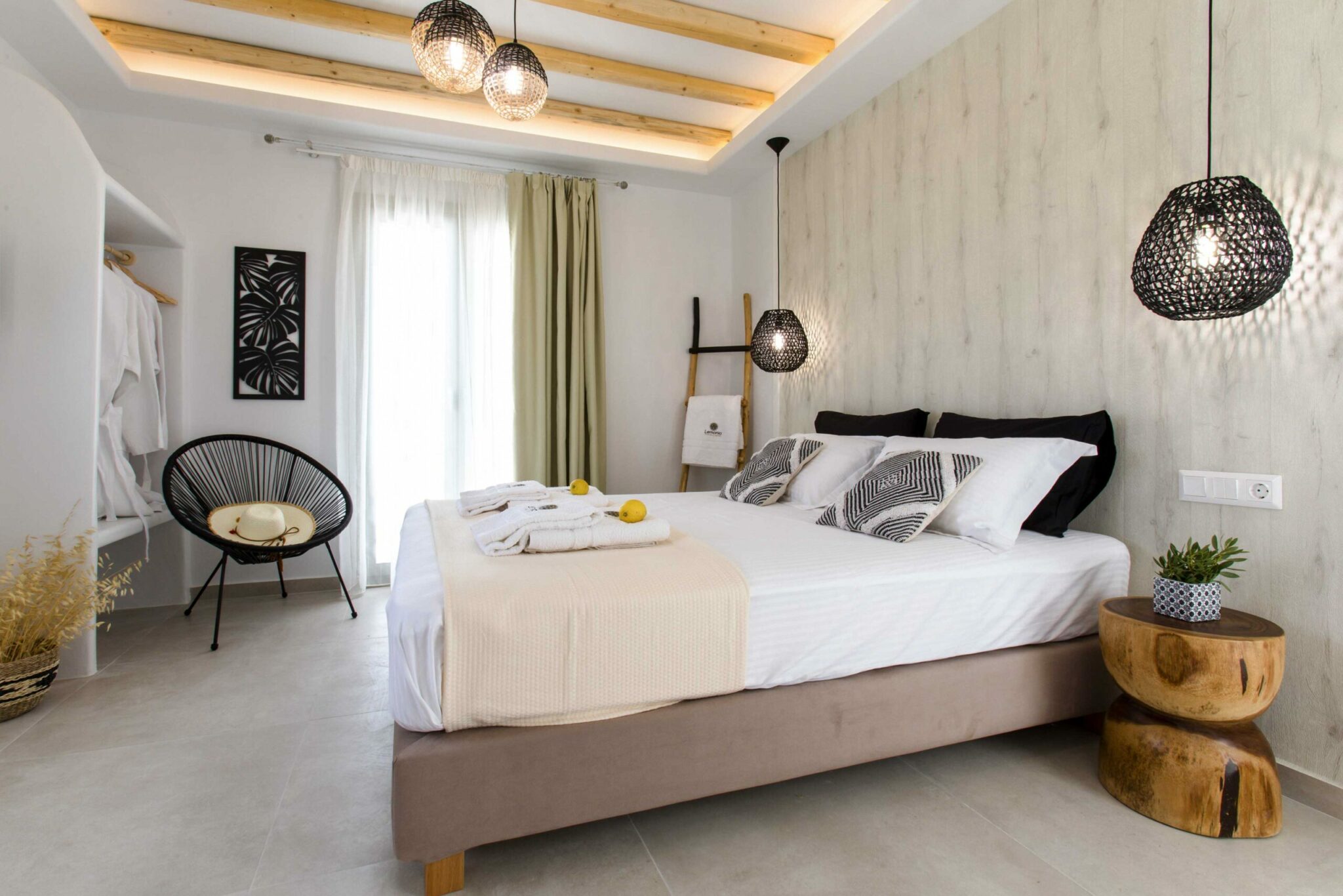 Naxian Utopia: Όμορφες και καλά εξοπλισμένες βίλες και σουίτες -κάποιες με ιδιωτική πισίνα, ή τζακούζι. Το λιτό ντιζάιν συνδυάζεται με boho πινελιές. Θα απολαύσετε τις υπηρεσίες ευεξίας του Naxian Utopia spa by Apivita.