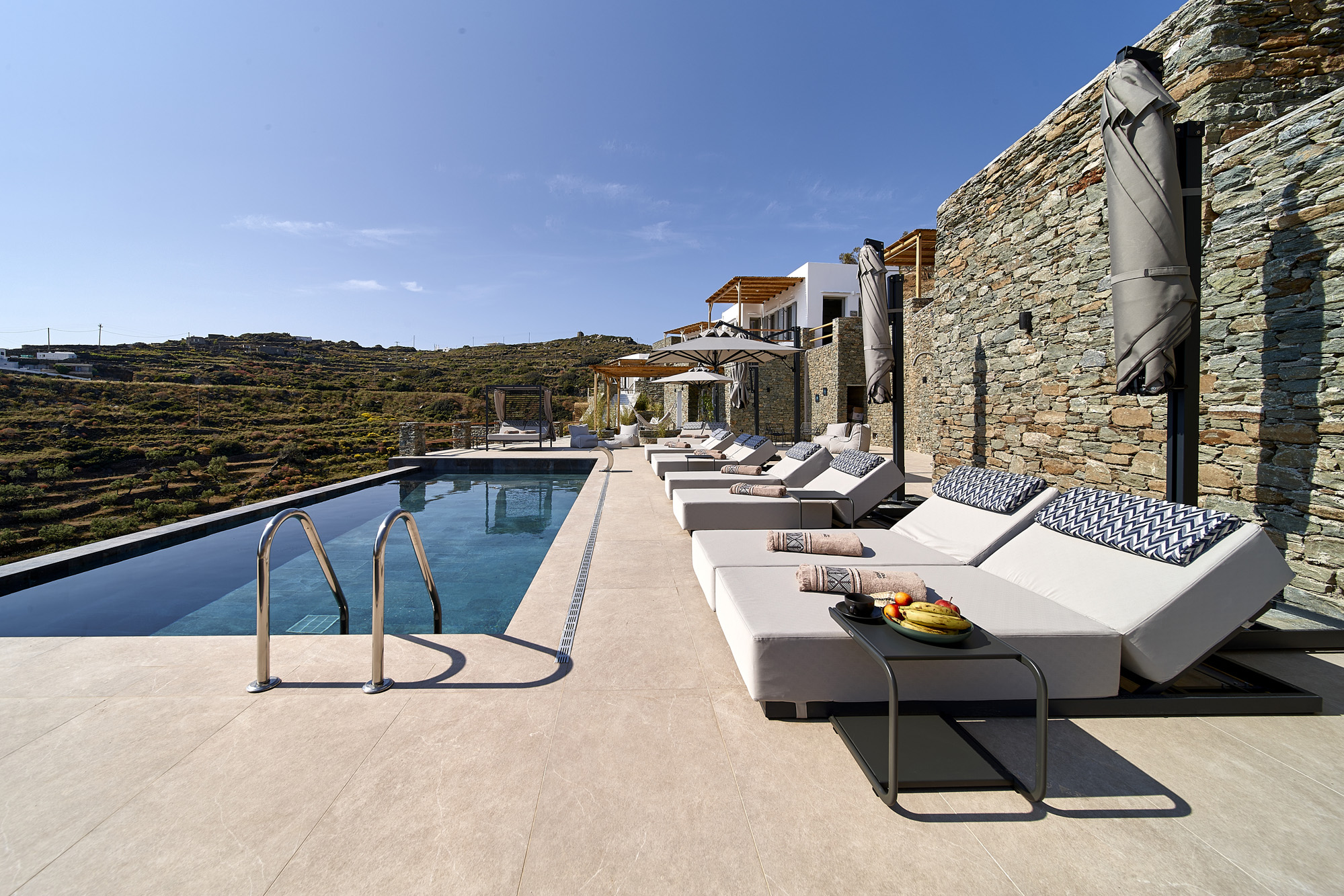 NOS Hotel & Villas: Με έμπνευση τη Σίφνο και με τη χρήση πολλών φυσικών υλικών, οι διακοσμητές δημιούργησαν σουίτες με αξιοθαύμαστο ντιζάιν στο οποίο έρχονται να προστεθούν λεπτομέρειες όπως τα χειροποίητα κεραμικά. Έχουν δικές τους πισίνες και θέα στο πέλαγος.
