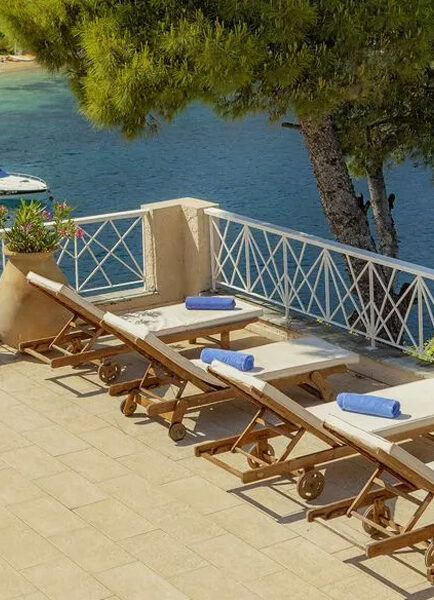 Skiathos Palace ( www.skiathos-palace.gr). Από τα πιο εμβληματικά ξενοδοχεία της Σκιάθου, χτισμένο αμφιθεατρικά πάνω από τις φημισμένες Κουκουναριές. Με περισσότερα από 50 χρόνια ιστορίας και πρόσφατη ανακαίνιση, προσφέρει σύγχρονα δωμάτια και σουίτες με αναβαθμισμένες παροχές στο Executive Plus Floor. Διαθέτει μεγάλη πισίνα, συνεδριακό κέντρο διεθνών προδιαγραφών, αλλά και το εντυπωσιακό roof garden εστιατόριο «White View», γνωστό για την πανοραμική θέα και τη μεσογειακή του κουζίνα. Το ξενοδοχείο φέρει οικολογικές πιστοποιήσεις και ISO, ενώ η κοντινή παραλία Μάραθα, βραβευμένη με Γαλάζια Σημαία, συμπληρώνει την εμπειρία με το κομψό Maratha Beach Bar κάτω από τα πεύκα. Ένα πολυτελές κατάλυμα που συνδυάζει φιλοξενία, άνεση και απαράμιλλη θέα στο Αιγαίο.
