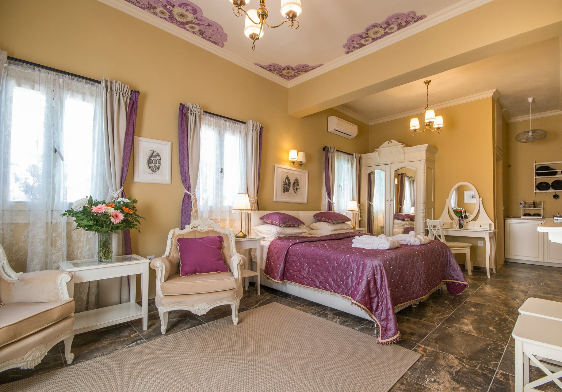 Αλίκη: Το κτήριο όπου στεγάζεται απέχει λίγα μόλις μέτρα από το νερό. Είναι του 1895 και είχε δοθεί ως προίκα στη μητέρα του Γιώργου Γεννηματά που καταγόταν από το νησί. Οι χώροι και τα δωμάτια είναι κλασικά διακοσμημένα.