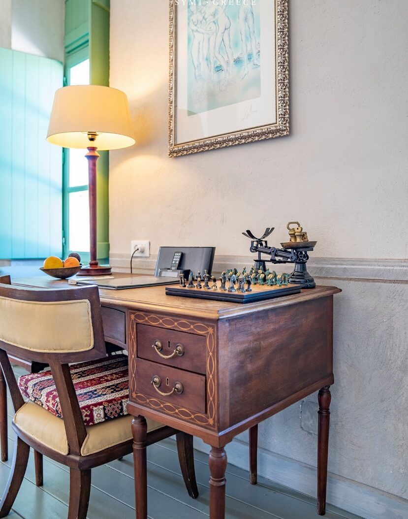 Symi Nautilus Luxury Suites: Πλήρως εξοπλισμένα διαμερίσματα και στούντιο με κουζίνα. Έχουν κλασική διακόσμηση, ζωγραφιστά ταβάνια, γκραβούρες και πινελιές πολυτέλειας που παραπέμπουν στο παρελθόν του νησιού. Υπάρχουν βεράντες και κατάφυτος κήπος. Στους κοινόχρηστους χώρους και στο superior studio οι ιδιοκτήτες εκθέτουν μια συλλογή σπάνιων κογχυλιών και οστράκων από διάφορα μέρη του κόσμου.
