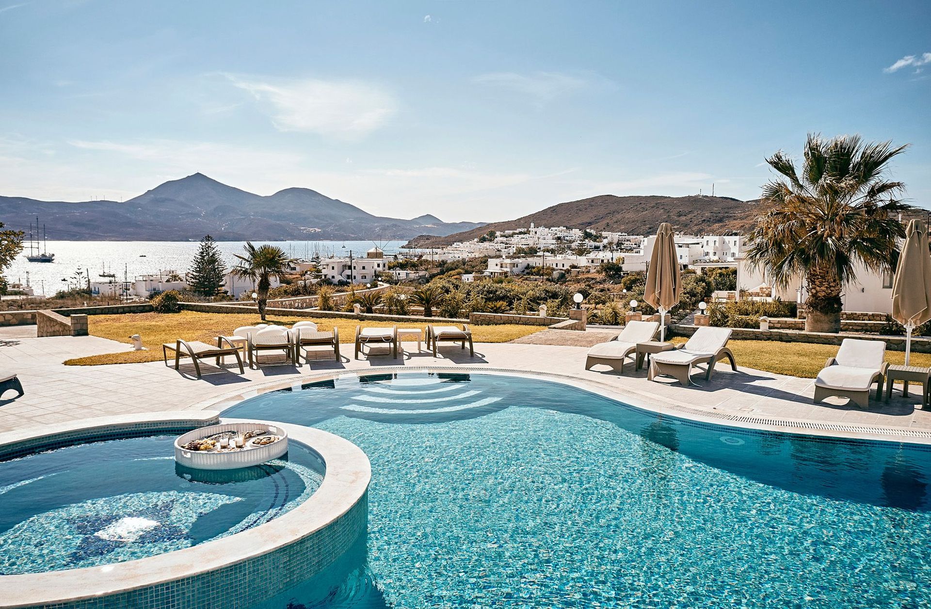 Milos Breeze Boutique Hotel: κτισμένο σε ύψωμα, με ωραία θέα, έχει διάφορους τύπους δωματίων.