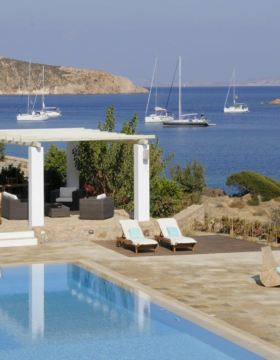 Patmos Exclusive Villas: πολυτελείς και μεγάλες βίλες, διαμερίσματα και στούντιο διαφόρων τύπων, όχι μόνο στη Σκάλα αλλά και στη Χώρα, ή σε παραλίες του νησιού.