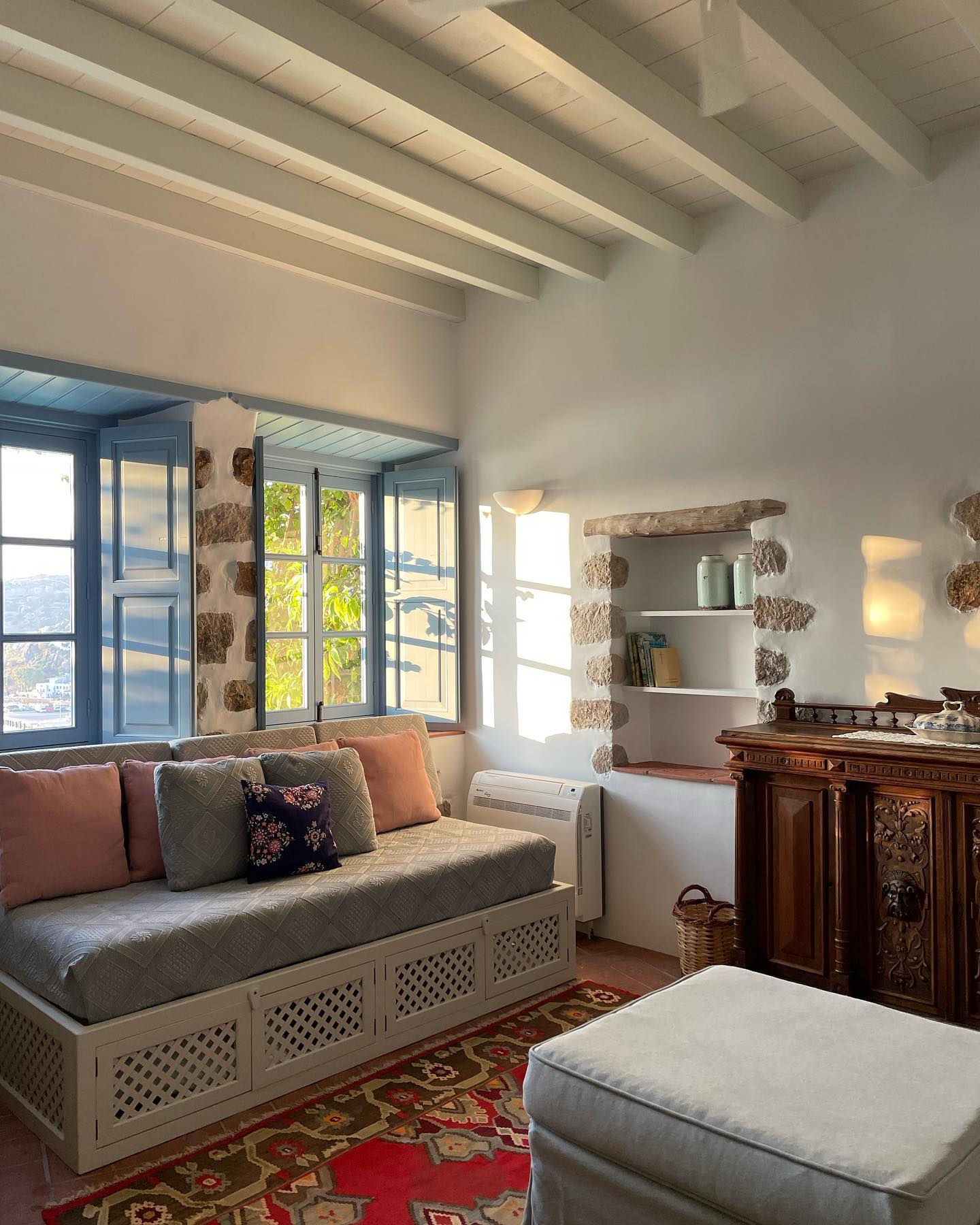 En Patmo Holiday Home: ένα πολύ ωραία διακοσμημένο και εξοπλισμένο σπίτι που διατηρεί την παραδοσιακή αρχιτεκτονική του νησιού, τόσο εξωτερικά όσο και στους εσωτερικούς χώρους. Υπάρχουν ωραίες βεράντες και αυλή.