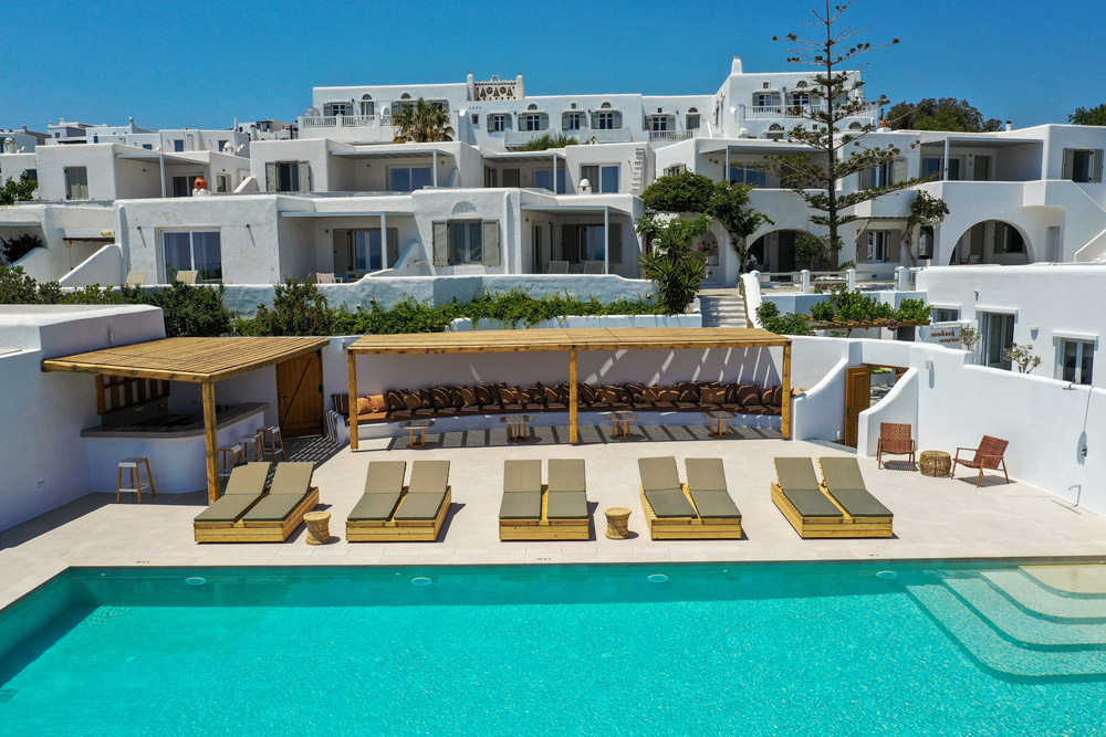 Kynara Boutique Village – Άγιος Δημήτριος: πολυτελές resort με θέα στο πέλαγος, πετρόκτιστες βεράντες, πισίνες και μεγάλες σουίτες με πολύ καλαίσθητη διακόσμηση.
