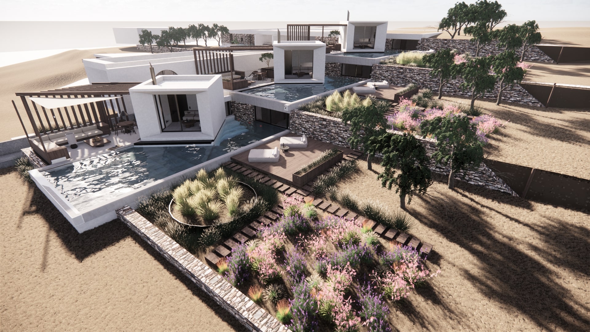 Tinos Dove Suites – Τριαντάρος: μεγάλες και πολυτελείς σουίτες στα χρώματα της άμμου, με πισίνες και πολύ καλόγουστη διακόσμηση.