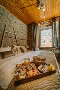 Στο κέντρο της Αράχωβας, με δωμάτια και δύο σουίτες που έχουν ωραία διακόσμηση.