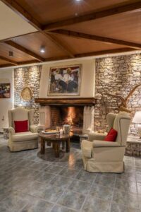 Στην πλαγιά του βουνού, σε στυλ μικρού παραδοσιακού χωριού, με τρία κτίσματα όπου το ξύλο και η πέτρα κυριαρχούν. Πολυτελή δωμάτια και σουίτες με τζάκια (32 συνολικά στο ξενοδοχείο) από τις οποίες ξεχωρίζει η Crystal. Υπάρχει εσωτερική πισίνα, spa, ωραίος χώρος πρωινού και καφέ-ποτού.