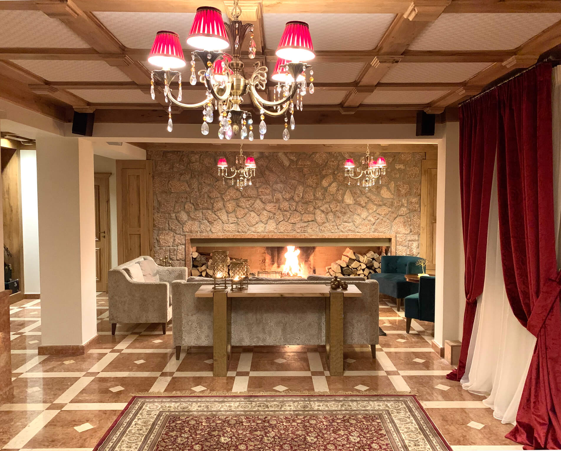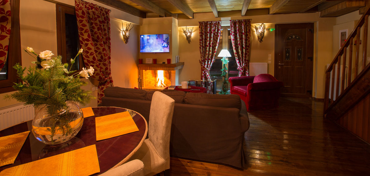 Στην πλαγιά του βουνού, σε στυλ μικρού παραδοσιακού χωριού, με τρία κτίσματα όπου το ξύλο και η πέτρα κυριαρχούν. Πολυτελή δωμάτια και σουίτες με τζάκια (32 συνολικά στο ξενοδοχείο) από τις οποίες ξεχωρίζει η Crystal. Υπάρχει εσωτερική πισίνα, spa, ωραίος χώρος πρωινού και καφέ-ποτού.