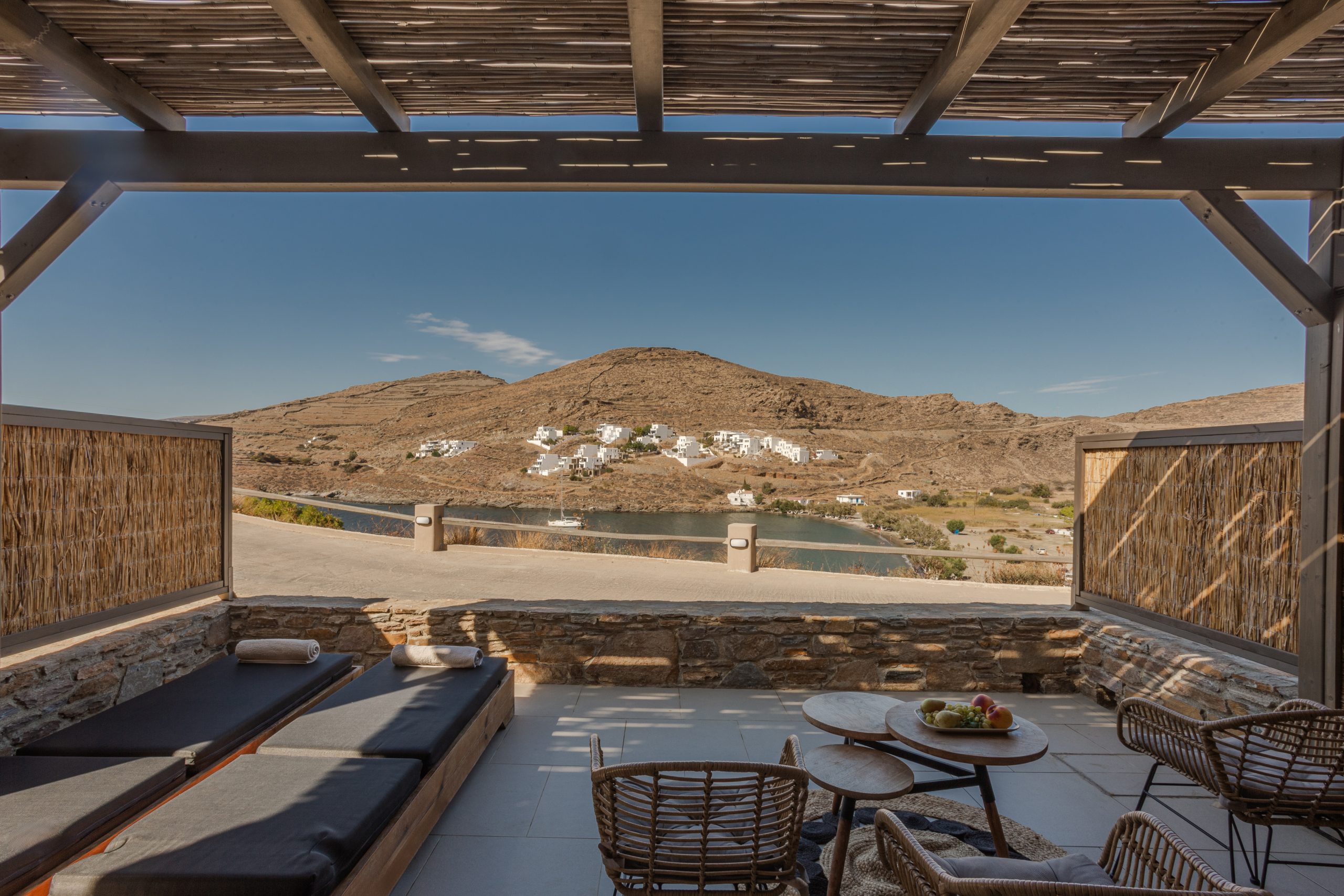 Kythnos Bay. Σύγχρονο συγκρότημα 40 μ. από την παραλία. Διαθέτει 50 δωμάτια και σουίτες με μίνιμαλ διακόσμηση. Τα περισσότερα από τα αυτά έχουν μπαλκόνια που βλέπουν στη θάλασσα. Σερβίρεται ελληνικό πρωινό και υπάρχει κατάστημα με ρούχα και αξεσουάρ.