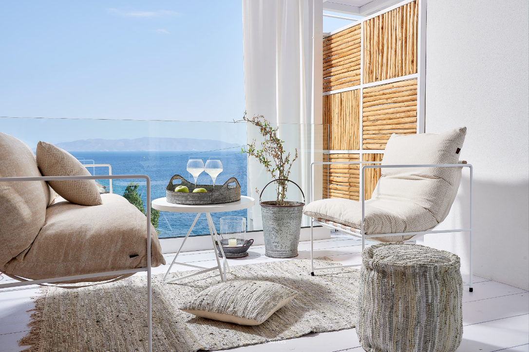 Niva Suites. Mια μεζονέτα και δύο σουίτες με μίνιμαλ διακόσμηση καλού γούστου. Διαθέτουν πισίνα και μεγάλες εξωτερικές βεράντες με θέα στη θάλασσα.
