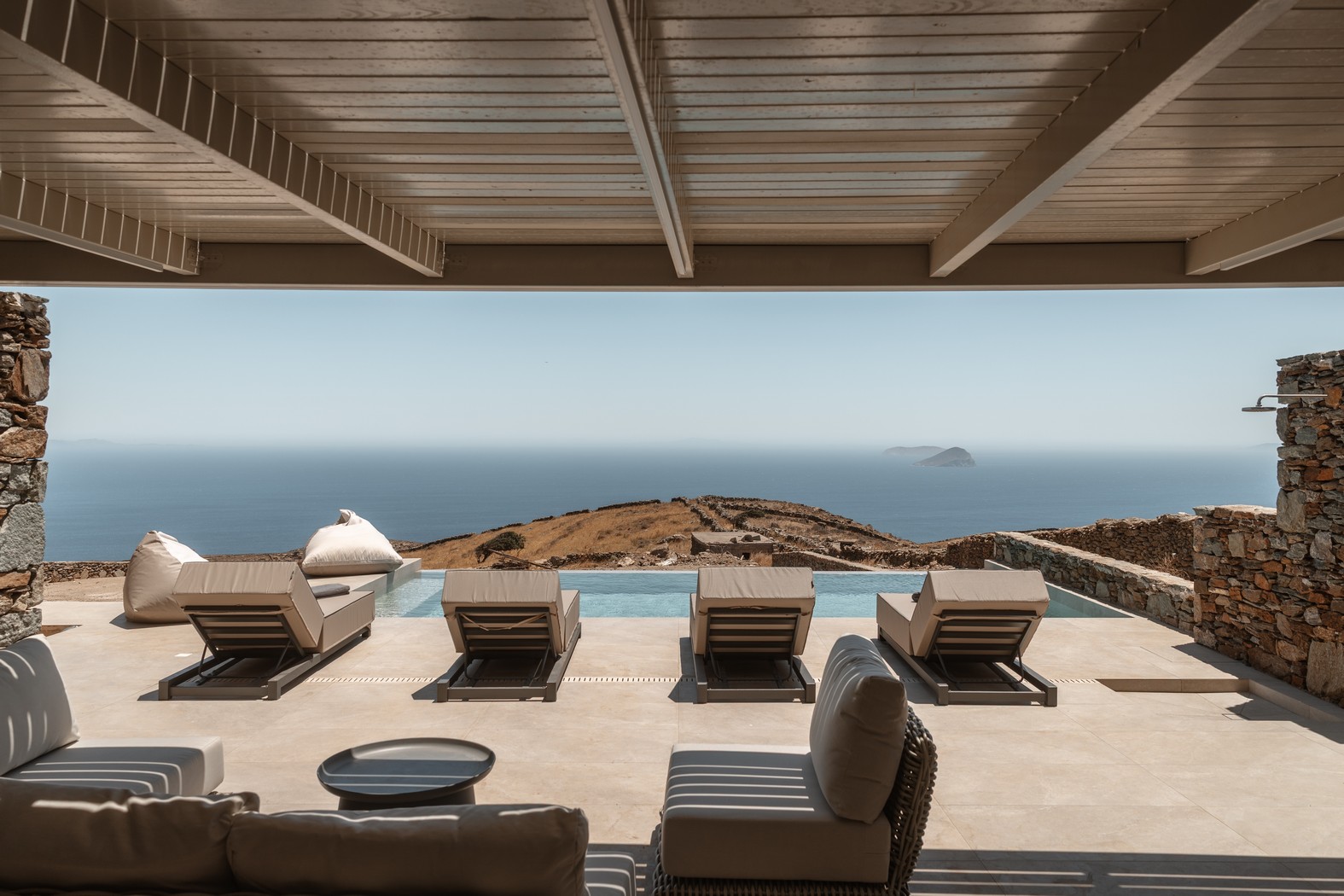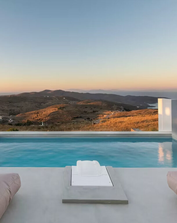 Idylle Kythnos Villa. Moντέρνα και πολυτελής βίλα με πανοραμική θέα στη θάλασσα και πισίνα. Χωράει έως 6 φιλοξενούμενους.