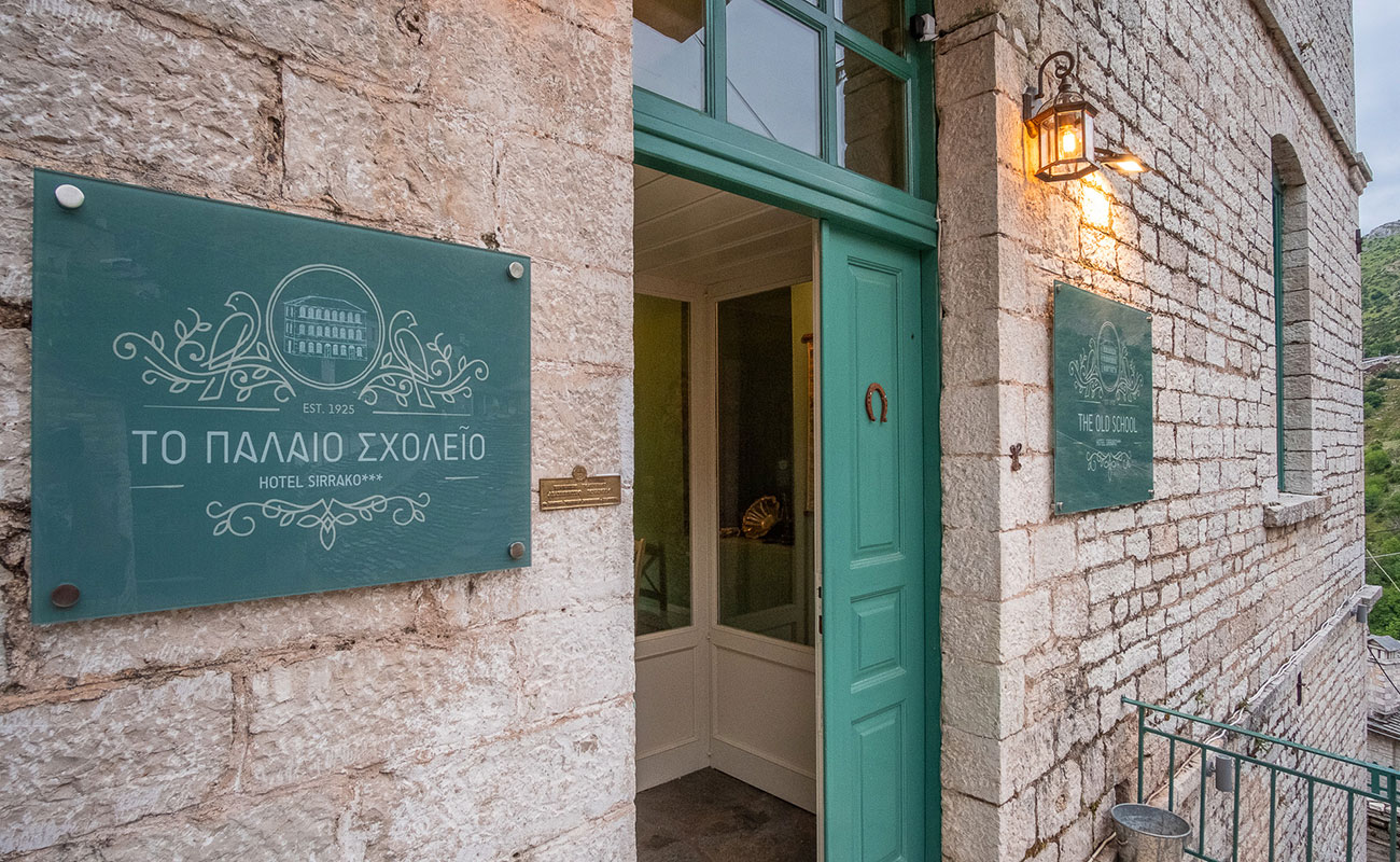 Το εμβληματικό τριώροφο πέτρινο κτίριο που αποτέλεσε το δημοτικό σχολείο του οικισμού του Συρράκο, και είναι χαρακτηρισμένο ως νεότερο μνημείο, έχει μετατραπεί σε ένα πανέμορφο boutique ξενοδοχείο με 9 δωμάτια, χώρο υποδοχής και αίθουσα πρωινού. Είναι χτισμένο εδώ και έναν αιώνα, ξεχωρίζει από μακριά και αποτέλεσε για πολλά χρόνια το σημείο συνάντησης, μαθητών του χωριού. Σήμερα έχει μετατραπεί σε ένα ζεστό και φιλόξενο χώρο με φλοκάτες, σκουρόχρωμα ξύλινα έπιπλα, ωραίας αισθητικής χρώματα, αναπαυτικά κρεβάτια και στρώματα. Κάποια από τα δωμάτια διαθέτουν τζάκι ενώ το πρωινό σερβίρεται σε μία από τις δύο σάλες του ξενώνα, δίνοντας έμφαση στην ποιότητα και την εντοπιότητα των πρώτων υλών.
