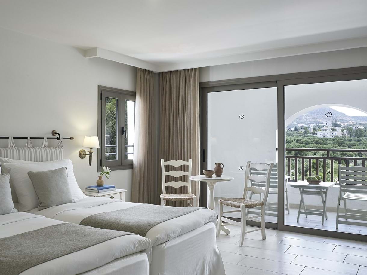 Όσα για τα δωμάτια, το λευκό, καθαρό χρώμα είναι αυτό που κυριαρχεί σχεδόν σε κάθε χώρο του ξενοδοχείου, κάτι που κάνει το περιβάλλον να μοιάζει ακόμα πιο «ήσυχο», ακόμα πιο φωτεινό, ακόμα πιο χαρούμενο. Αποχρώσεις του μπλε και του γαλάζιου, το ξύλο και οι τόνοι του μπεζ και του γκρι είναι επίσης παρόντες, χαρίζοντας μία αίσθηση διακριτικής φινέτσας και κομψότητας σε κάθε γωνιά του Creta Maris Beach Resort.