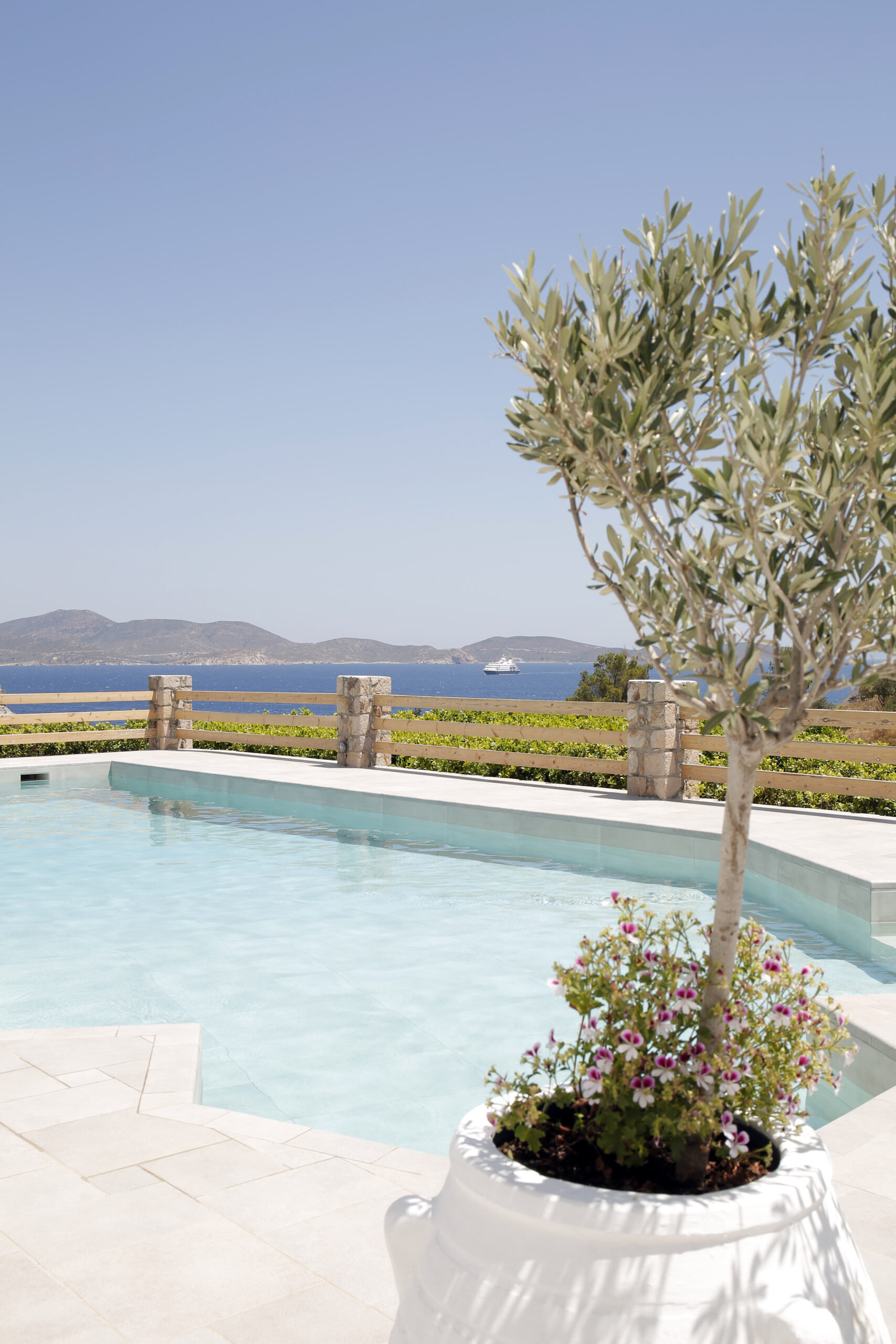 Πρόκειται για το μοναδικό πεντάστερο ξενοδοχείο στην Πάτμο. Η μινιμαλιστική αρχιτεκτονική γραμμή παίζει πρωταγωνιστικό ρόλο στην ατμόσφαιρά του. Διαθέτει 56 δωμάτια και σουίτες, κάποια με ιδιωτική πισίνα ενώ μπροστά στο ξενοδοχεία εκτείνεται μεγάλη οργανωμένη παραλία. Τα δωμάτια και οι σουίτες είναι σχεδιασμένα με τέτοιο τρόπο ώστε να συνδυάζουν την ομορφιά της ελληνικής φύσης και αρχιτεκτονικής. Οι ευρύχωροι εσωτερικοί χώροι τους λούζονται από το φως του ήλιου και προσφέρουν υπέροχη θέα στο απέραντο γαλάζιο, διακοσμημένοι με ένα συνδυασμό μοντέρνας και παραδοσιακής διακόσμησης και επίπλωσης με πρώτη ύλη τα γήινα υλικά.