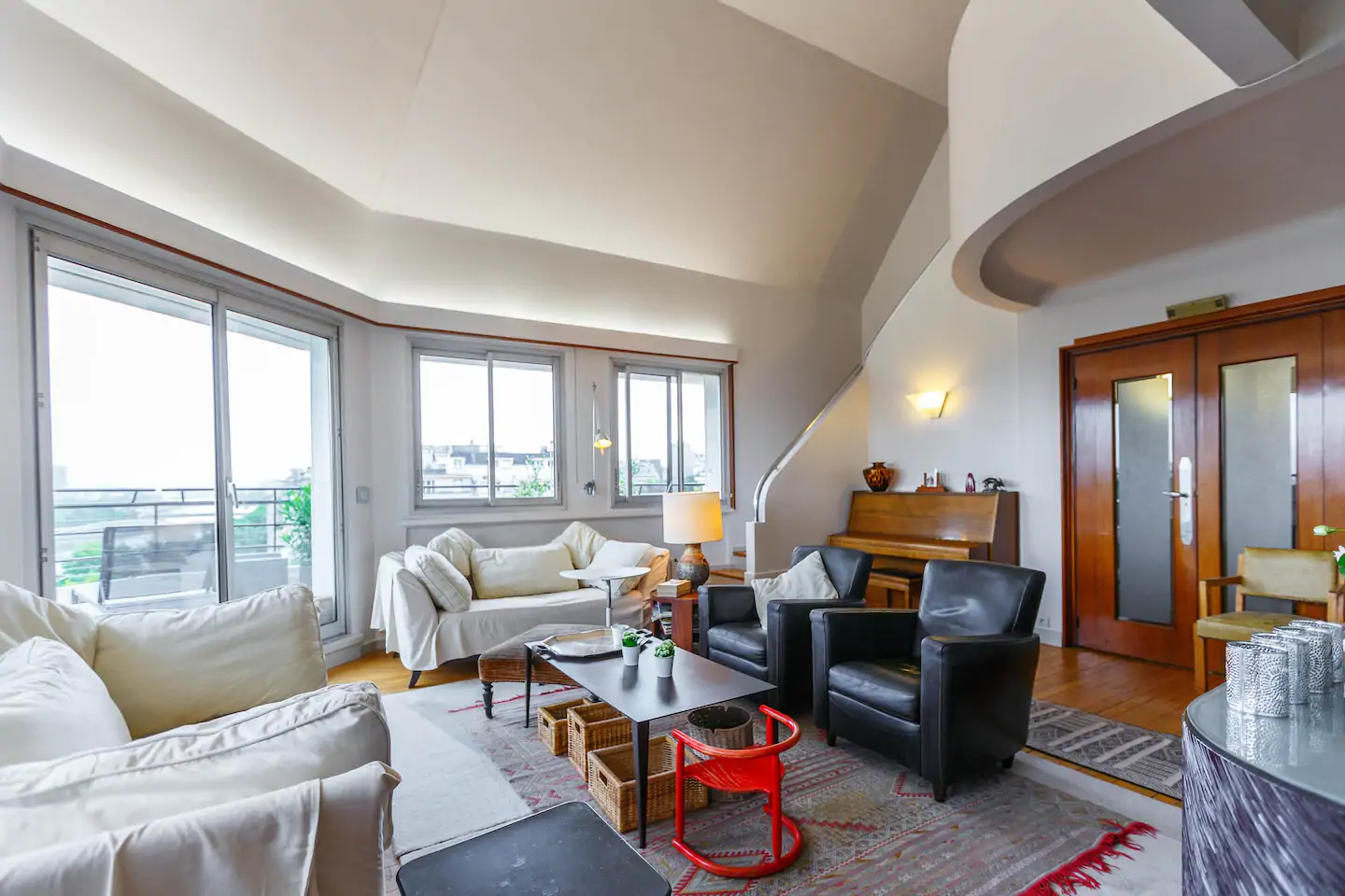 Ένας πολύ μοντέρνος open plan χώρος με εσωτερική σκάλα και σικάτη διακόσμηση περιμένει τους επισκέπτες δίπλα σε ένα από τα πιο γνωστά πάρκα του Παρισιού, στους υπέροχους κήπους του Λουξεμβούργου.