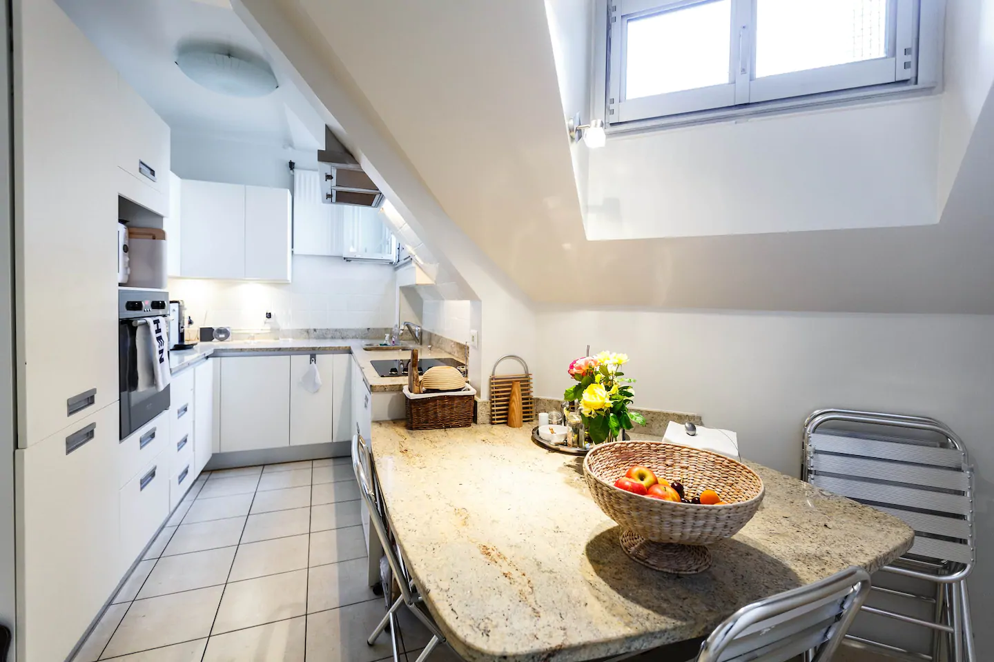 Το διαμέρισμα διαθέτει ένα υπνοδωμάτιο με θέα, ένα μπάνιο με μεγάλη ντουζιέρα και μία καταπληκτική κουζίνα λες και βγήκε απευθείας από περιοδικό διακόσμησης εσωτερικών χώρων.