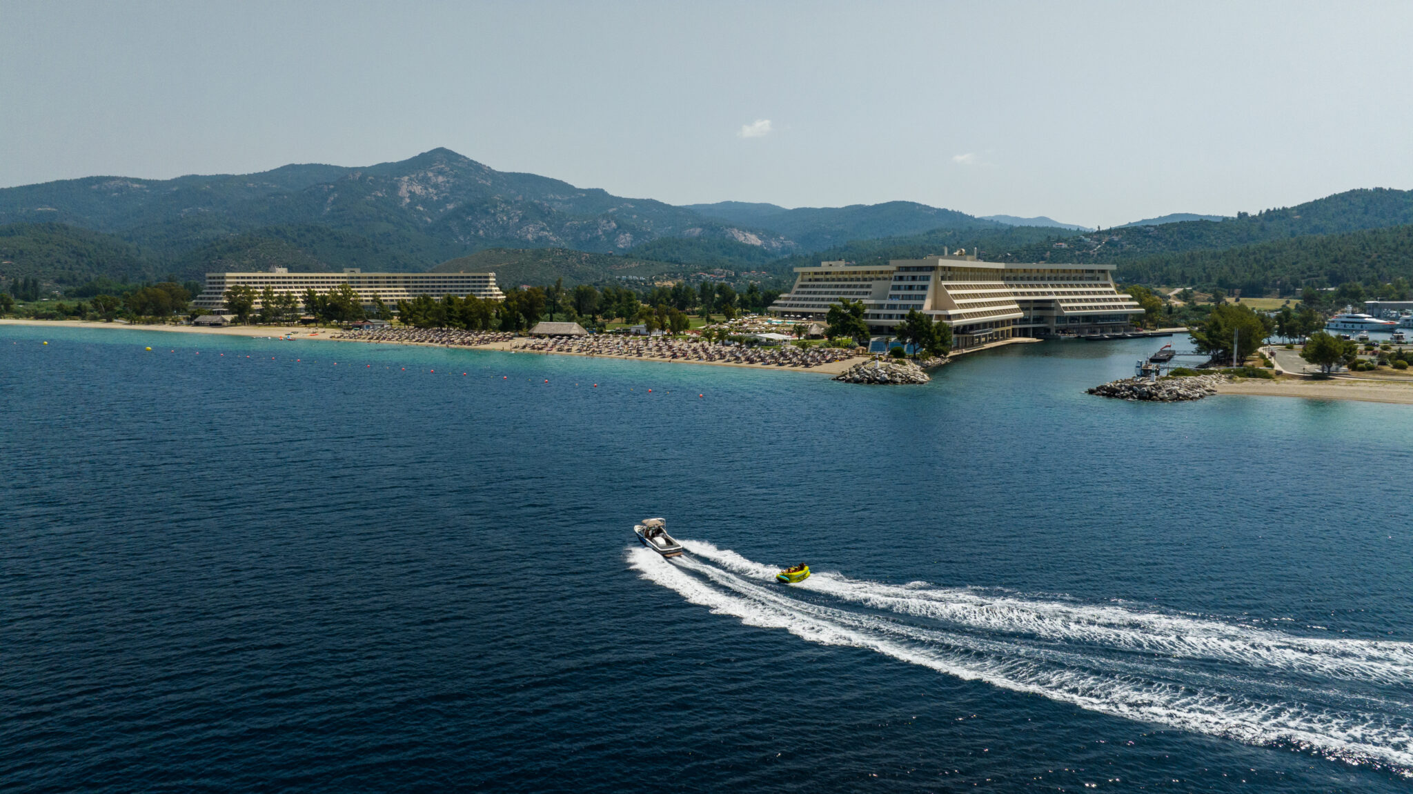 Φτάνοντας, θα μπορείτε να περπατήσετε στην τεράστια παραλία, μήκους 9 χιλιομέτρων, και θα βουτήξετε στα καταγάλανα νερά της Σιθωνίας, ρίχνοντας κλεφτές ματιές στην επιβλητική μαρίνα που έχει κατασκευαστεί ακριβώς δίπλα από το resort. Τα σκάφη που φτάνουν στο ξενοδοχείο «δένουν» αργά-αργά στις μεγάλες προβλήτες, οδηγώντας την εμπειρία του Porto Carras Grand Resort πολλά βήματα πιο κοντά στο ιδανικό yacht life. Τη νύχτα η θέα από το σημείο είναι μοναδική, με τα φώτα του resort να λάμπουν και τη θάλασσα της Χαλκιδικής να μοιάζει απέραντη, αλλά φιλόξενη.