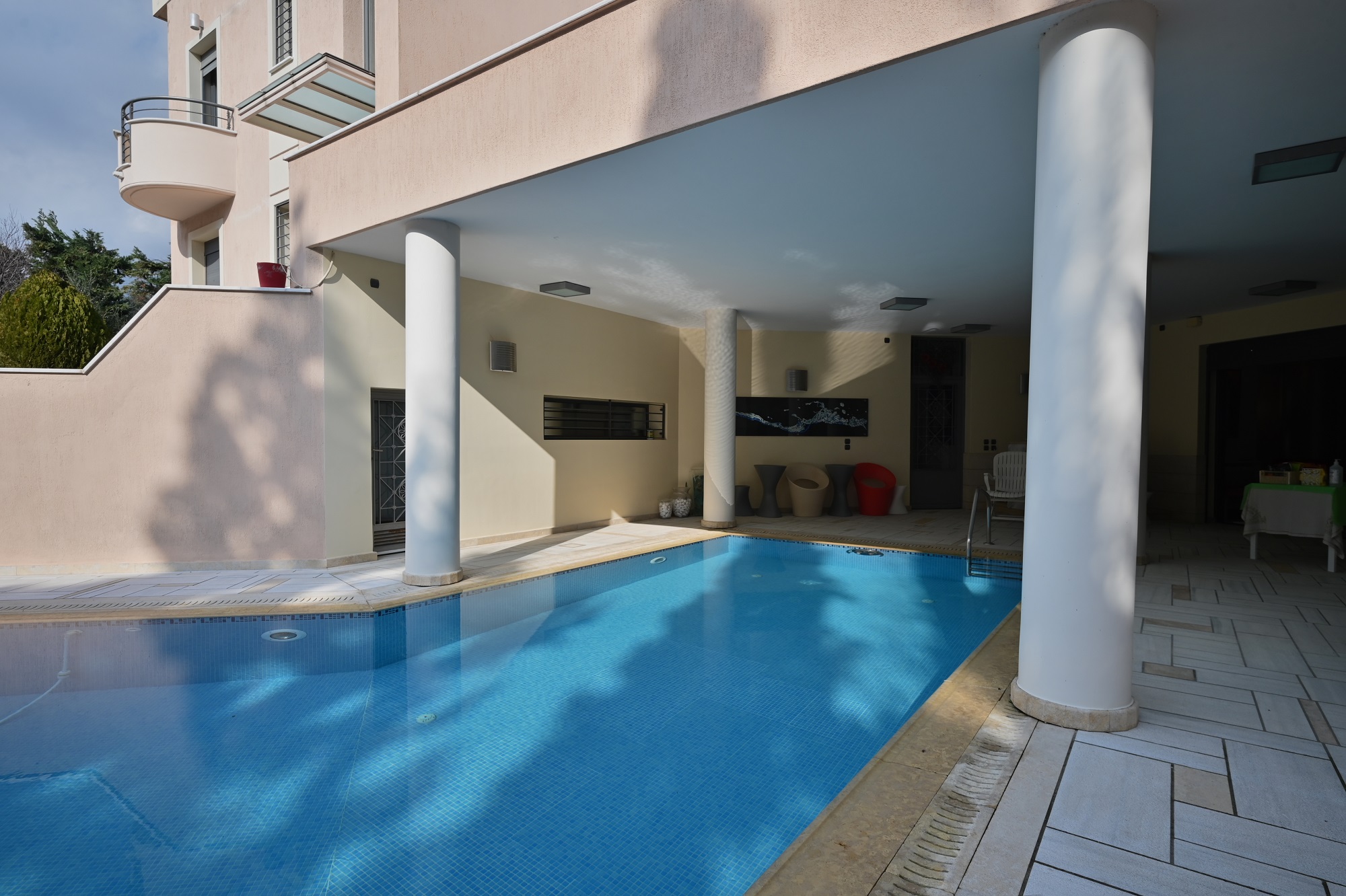 Πρόκειται για διώροφη βίλα 600 τ.μ. στο Πικέρμι, στο κέντρο του οικισμού, κατασκευής 2005. Αποτελείται από 4 υπνοδωμάτια, 3 σαλόνια, 3 κουζίνες, 5 μπάνια και 1 W.C., ενώ διαθέτει και 4 δικές της θέσεις στάθμευσης. Το ιδιαίτερο χαρακτηριστικό της είναι ότι προσφέρεται μερικώς επιπλωμένη, καθώς έχει χειροποίητα έπιπλα ειδικά φτιαγμένα για το συγκεκριμένο σπίτι.