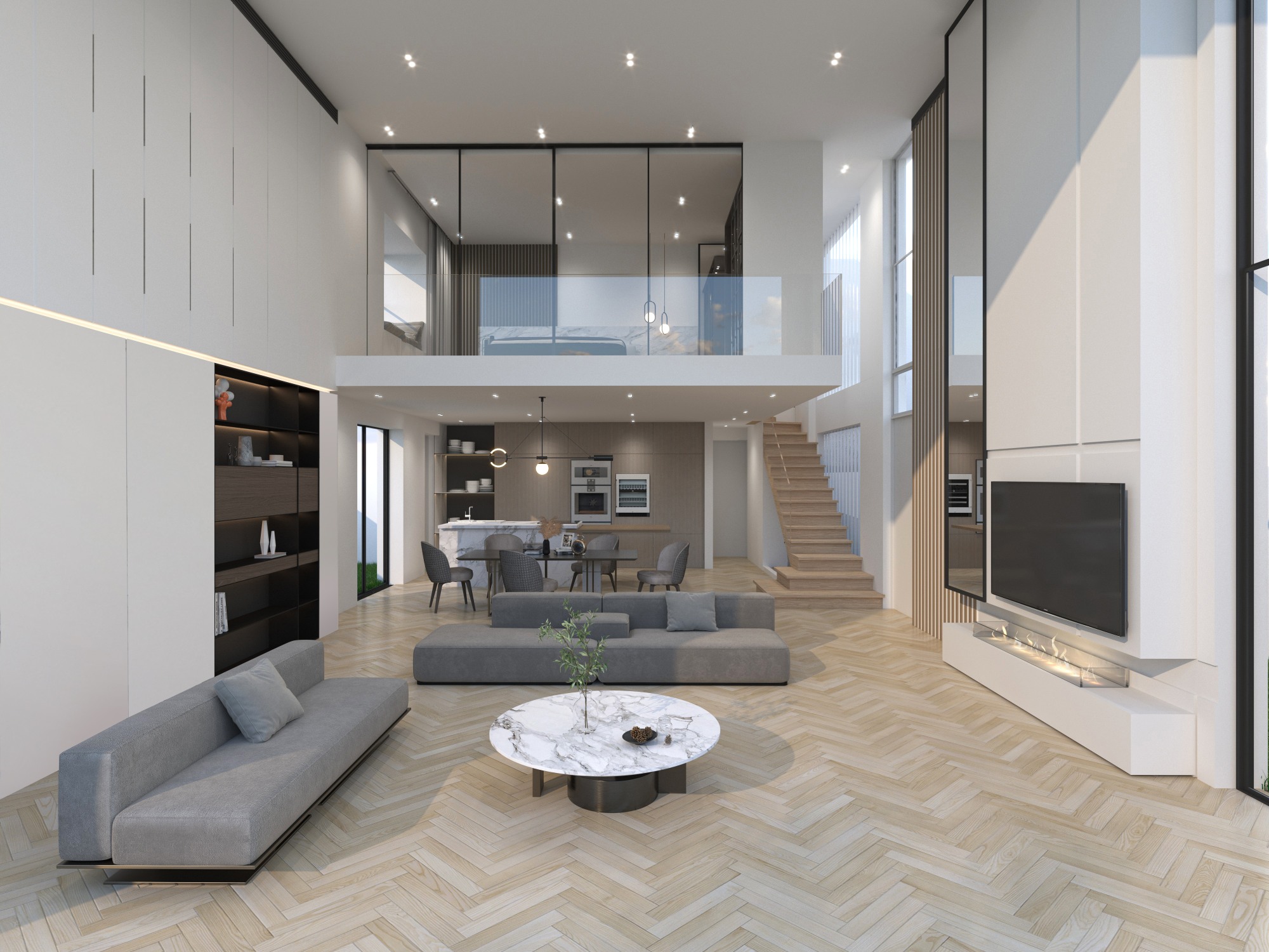 Εδώ, το ξύλο στα υπνοδωμάτια και το μάρμαρο στους κοινόχρηστους χώρους, προσφέρουν μια θαλπωρή αλλά και μία πολυτέλεια σε ένα άκρως λειτουργικό και όμορφο σπίτι.