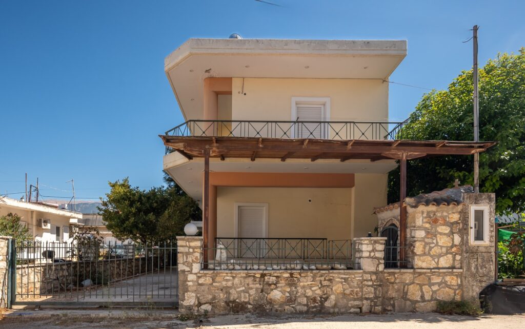Πρόκειται για μια διώροφη μεζονέτα συνολικής επιφάνειας 212,16 τ.μ, η οποία βρίσκεται στα Δεμένικα Πατρών, επί της οδού Νίκου Καζαντζάκη 11. Έτος κατασκευής 1995. Η κατοικία αναπτύσσεται σε τρία επίπεδα: ισόγειο 71,82τ.μ., 1ος 87,54τ.μ., υπόγειο 52,8τ.μ. Το ισόγειο αποτελείται από ενιαίο χώρο σαλονιού–τραπεζαρίας–κουζίνας, μπάνιο και εσωτερική σκάλα. Στον πρώτο όροφο βρίσκονται τέσσερα υπνοδωμάτια και ένα μπάνιο, ενώ η πρόσβαση στο δώμα γίνεται μέσω σιδερένιας σκάλας. Στο υπόγειο υπάρχει ενιαίος βοηθητικός χώρος. Η κατοικία διαθέτει τζάκι με επένδυση πέτρας και ηλιακό θερμοσίφωνα. Το ακίνητο διαθέτει μεγάλους και φωτεινούς χώρους, καλό λειτουργικό σχεδιασμό και σημαντικές δυνατότητες ανακαίνισης.