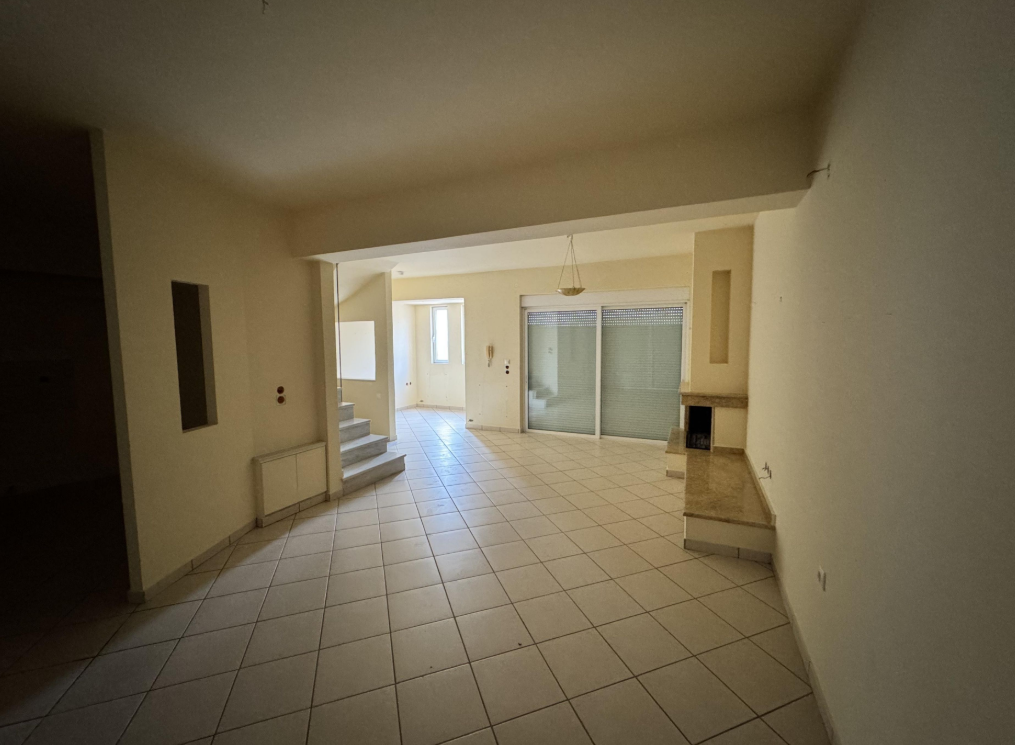 Ο πρώτος όροφος περιλαμβάνει 3 υπνοδωμάτια με ξύλινο δάπεδο, εντοιχισμένες ντουλάπες και μπαλκονόπορτες που οδηγούν σε μπαλκόνια, καθώς και μεγάλο μπάνιο με δύο παράθυρα στο οποίο έχουν αφαιρεθεί οι μπαταρίες νιπτήρα και μπανιέρας. Στο υπόγειο, βρίσκονται δύο ανεξάρτητες αποθήκες και επιπλέον βοηθητικοί χώροι που μπορούν να αξιοποιηθούν ως γραφείο, playroom ή χώροι υποστήριξης της κατοικίας. Υπάρχει επίσης WC και χώρος με τον καυστήρα. Η πρόσβαση στο υπόγειο γίνεται τόσο εσωτερικά όσο και εξωτερικά μέσω ρολού. Στη γενική εικόνα, η μεζονέτα είναι λειτουργική, φωτεινή και με ξεκάθαρο δυναμικό ανακαίνισης, με βασικές δομικές υποδομές σε καλή κατάσταση.