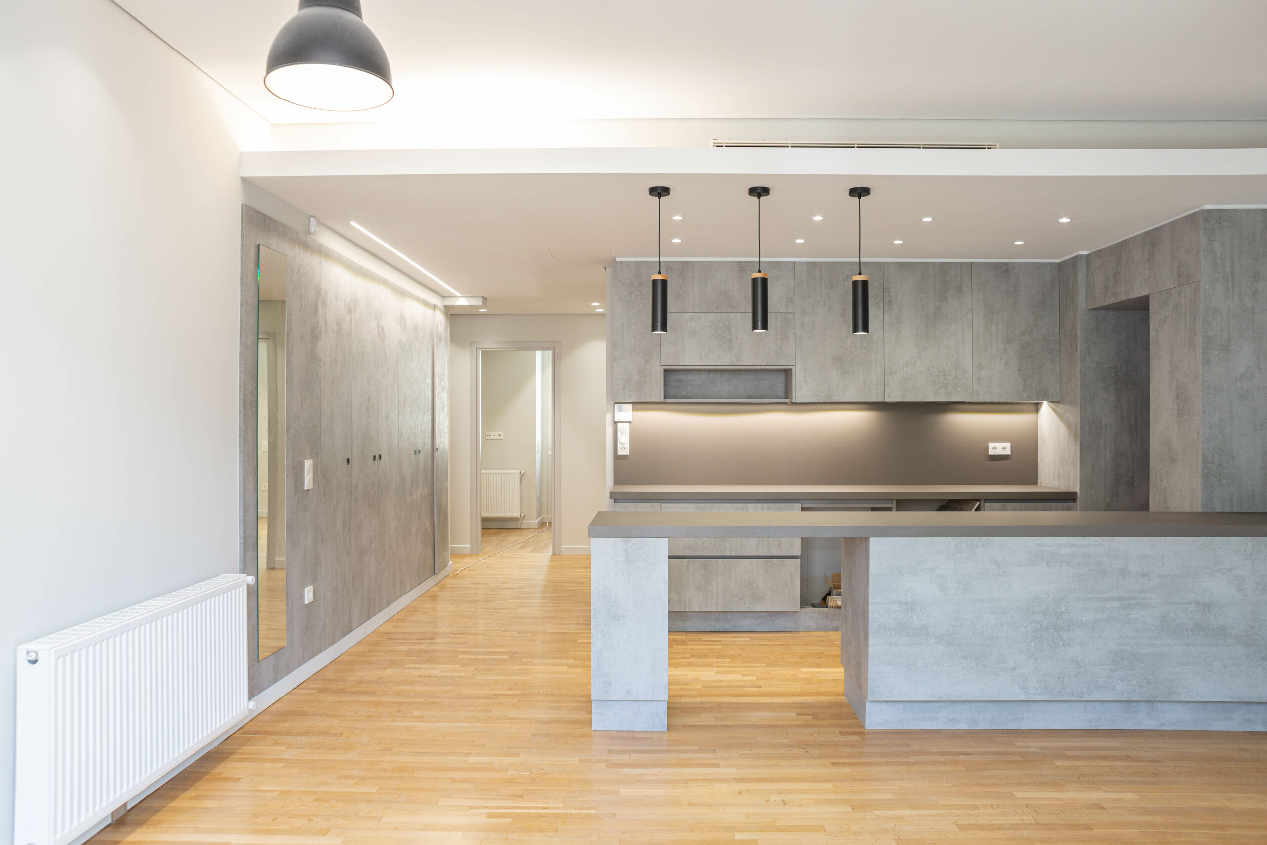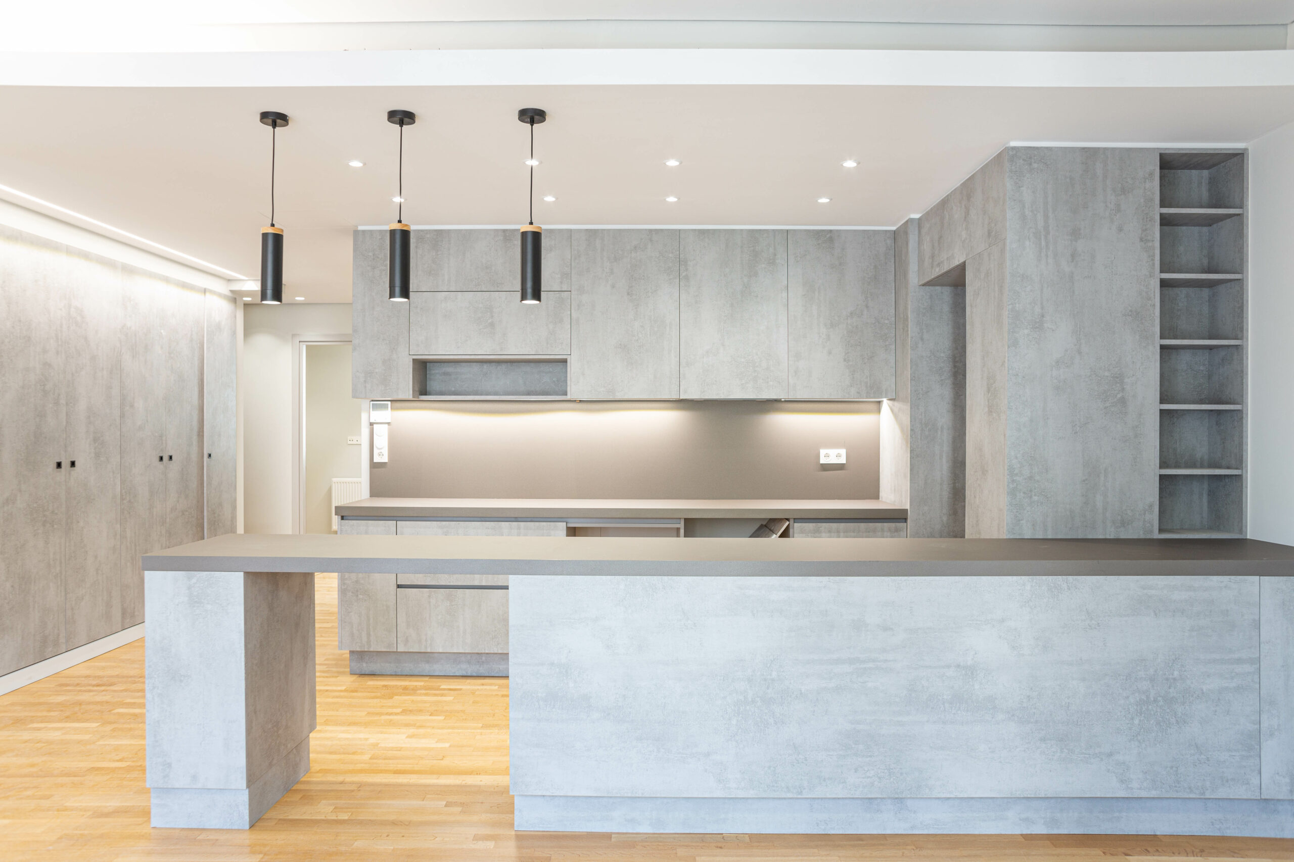 Η κουζίνα σε γκρι χρώμα και μοντέρνο ντιζάιν, είναι απίστευτα λειτουργική και έτοιμη να υποδεχτεί το μαγειρικό σας ταλέντο.
