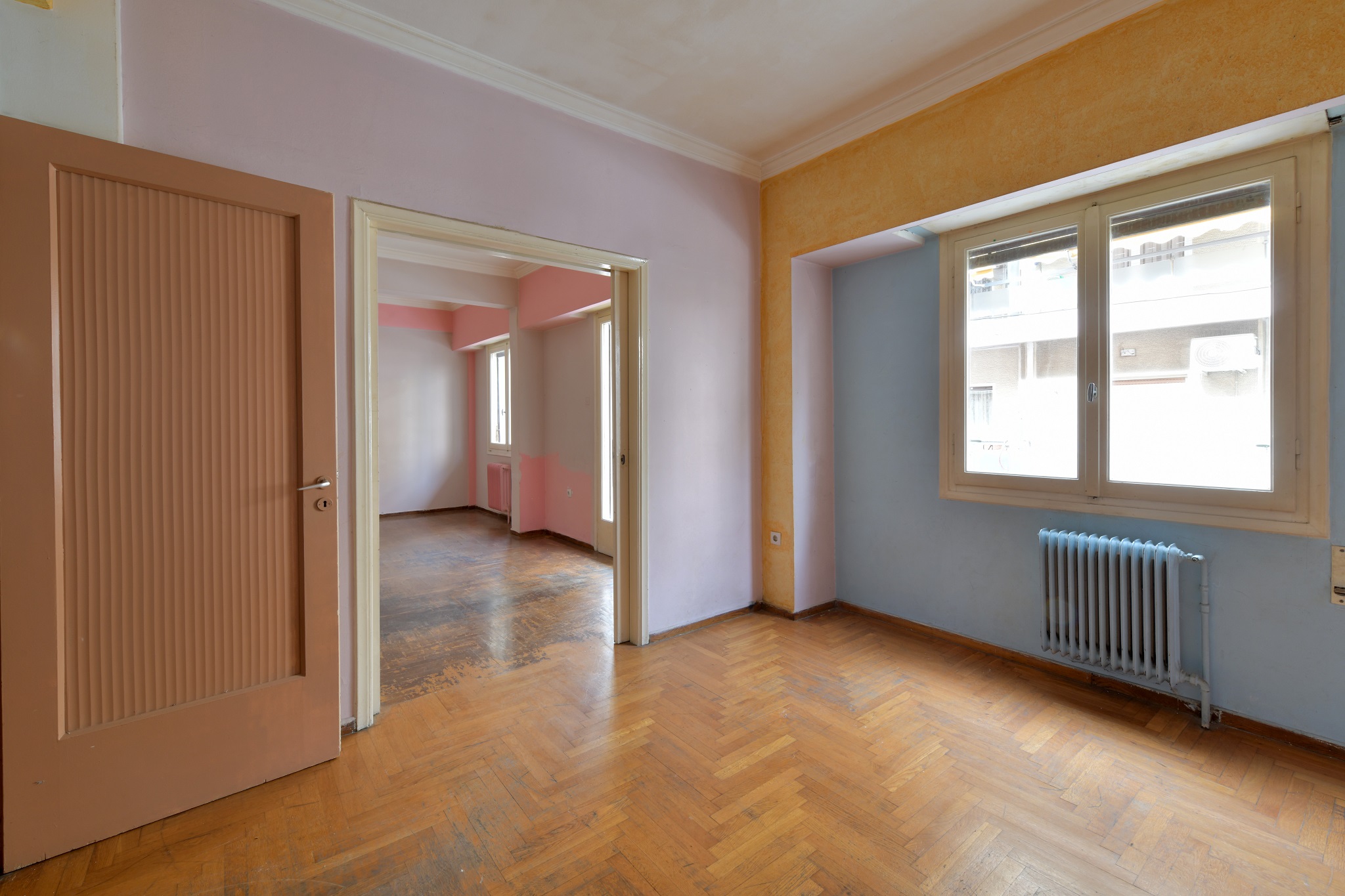 Αυτό το διαμέρισμα των 92,48 τ.μ. βρίσκεται στον 1ο όροφο πολυκατοικίας κατασκευασμένης το 1962, με καλό βαθμό συντήρησης, η οποία διαθέτει και ασανσέρ και κεντρική θέρμανση. Αποτελείται από 2 υπνοδωμάτια, σαλόνι και τραπεζαρία σε ενιαίο χώρο, κουζίνα, 1 μπάνιο και δωμάτιο υπηρεσίας, ενώ έχει και 3 μπαλκόνια, ξύλινα κουφώματα, καθώς και ξύλινα δάπεδα σε σαλόνι και τραπεζαρία. Το ακίνητο, που χρήζει ανακαίνισης, βρίσκεται σε πολύ καλή τοποθεσία, κοντά σε τράπεζες, καταστήματα, υπεραγορές και σχολεία –με άμεση πρόσβαση στο κέντρο της Αθήνας– και είναι κενό, αποτελώντας έτσι ιδανική επιλογή τόσο για ιδιοχρησία, όσο και για επένδυση (ενοικίαση).