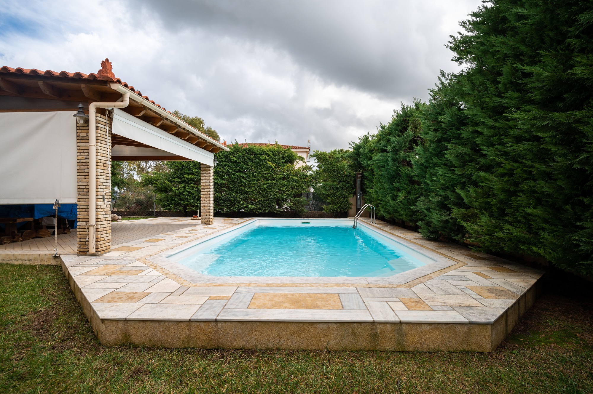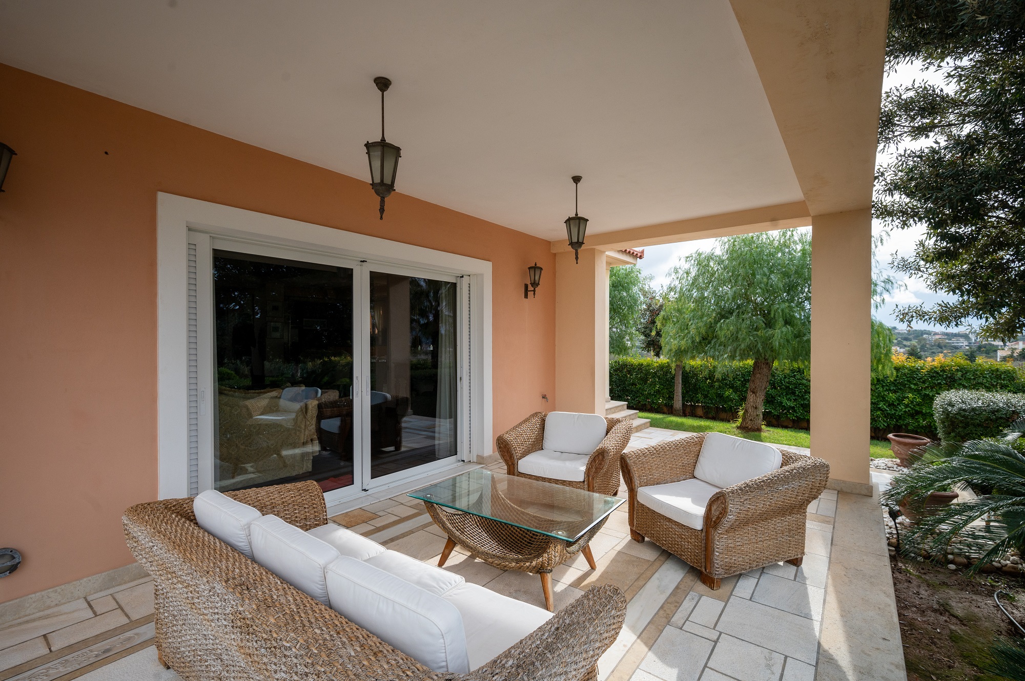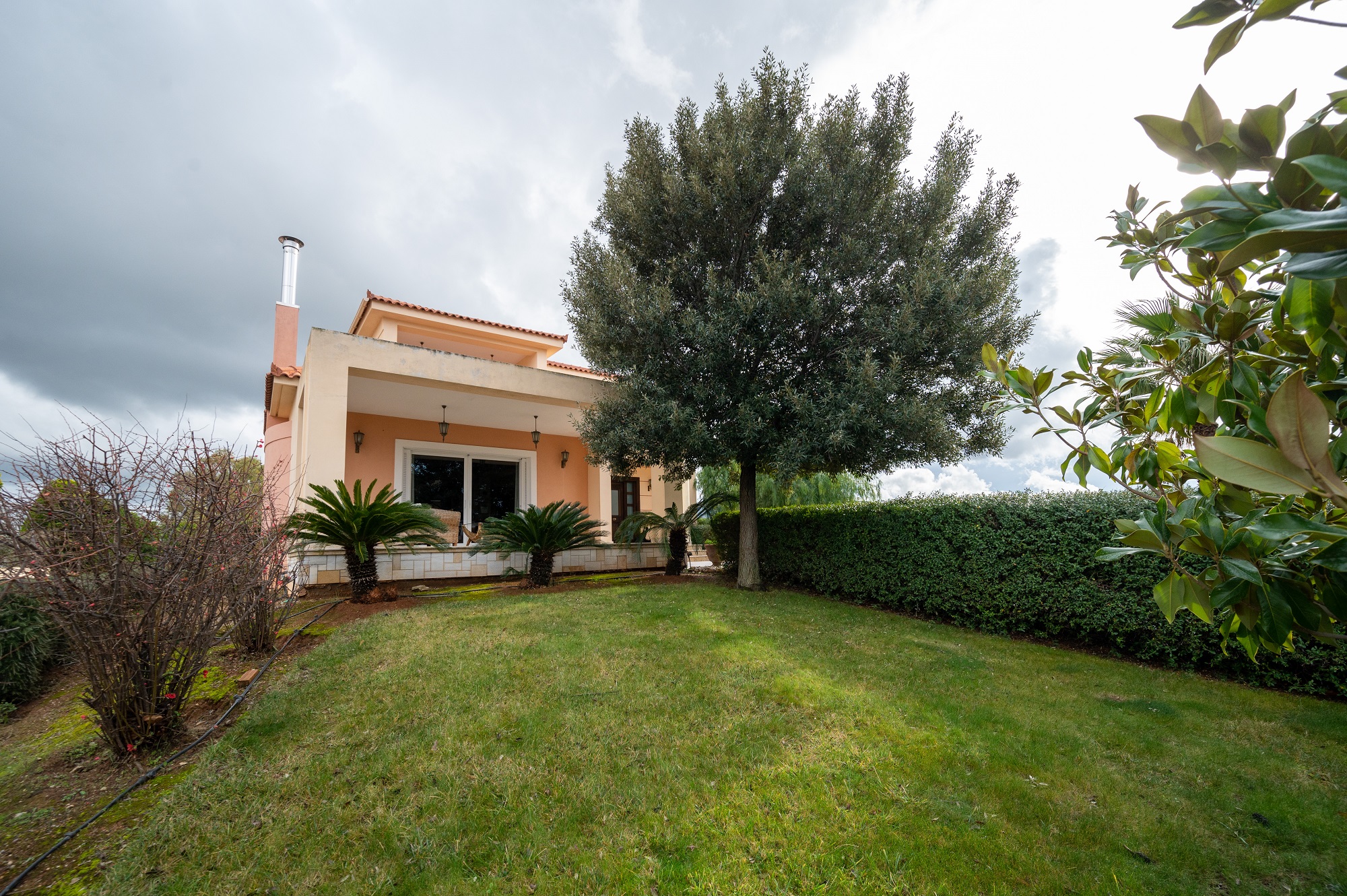 Πρόκειται για μια νεόδμητη (2007), τριώροφη βίλα 280 τ.μ., η οποία διακρίνεται για τη φωτεινότητά της και για τους άνετους, επιπλωμένους εσωτερικούς χώρους. Αποτελείται από 3 υπνοδωμάτια, σαλόνι, 1 κουζίνα, 2 μπάνια και 1 W.C., ενώ έχει και 3 δικές της θέσεις πάρκινγκ. Το ακίνητο διαθέτει πανοραμική θέα προς την πόλη και το πράσινο της περιοχής, ενώ ιδιαίτερο χαρακτηριστικό του είναι η μεγάλη (>20 τ.μ.) εξωτερική πισίνα.