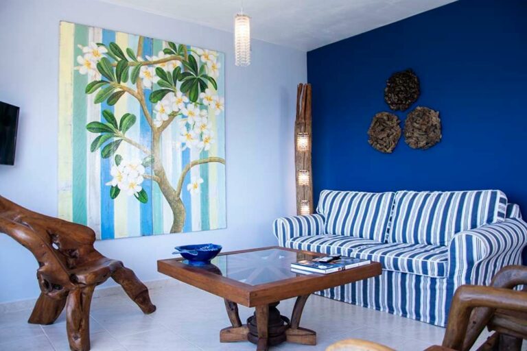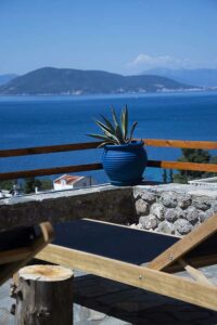 Ένα υπέροχο σπίτι που μυρίζει θάλασσα, γεμάτο μοναδικά έπιπλα από ξεβρασμένο ξύλο, με μπλε και γαλάζια διακόσμηση, μεγάλα παράθυρα με θέα θάλασσα και πολύ φως, καθώς και μια τεράστια βεράντα με άνετους καναπέδες, πολυθρόνες και ξαπλώστρες.
