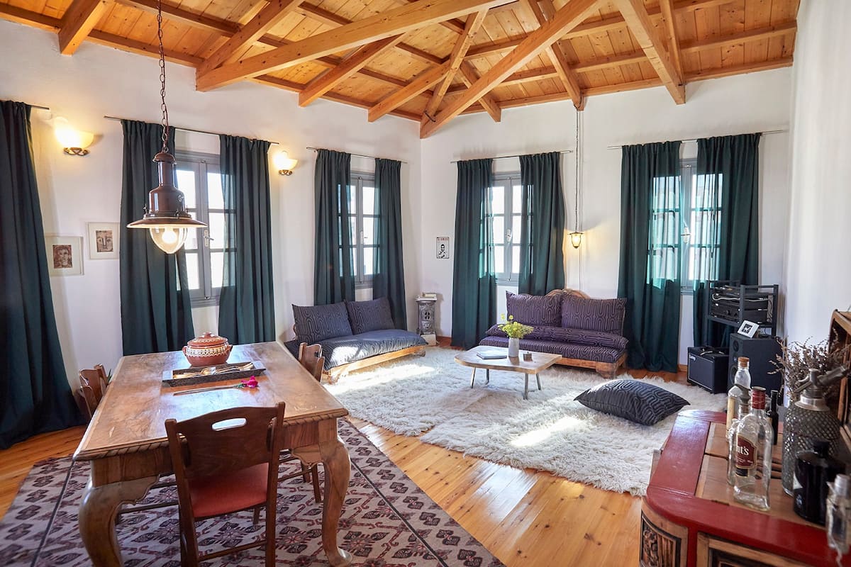 Σπίτια και καλντερίμια από πέτρα, ο Ναός με Αφαίας με τα λαμπερά του μάρμαρα, γαλαζοπράσινα νερά και αμμώδεις παραλίες, φιστικιές και πεύκα, κολπίσκοι και λιμάνια: όλα συνθέτουν τον ετερόκλητο χαρακτήρα της Αίγινας. Το νησί που αγαπήθηκε από συγγραφείς, γλύπτες και ζωγράφους, που λεηλατήθηκε από πειρατές και κυριεύτηκε από κατακτητές θα σας γοητεύσει με τη φυσική του ομορφιά και την πλούσια ιστορία του. Ας δούμε μερικά Airbnb με μοναδική προσωπικότητα που ανακαλύψαμε εκεί.