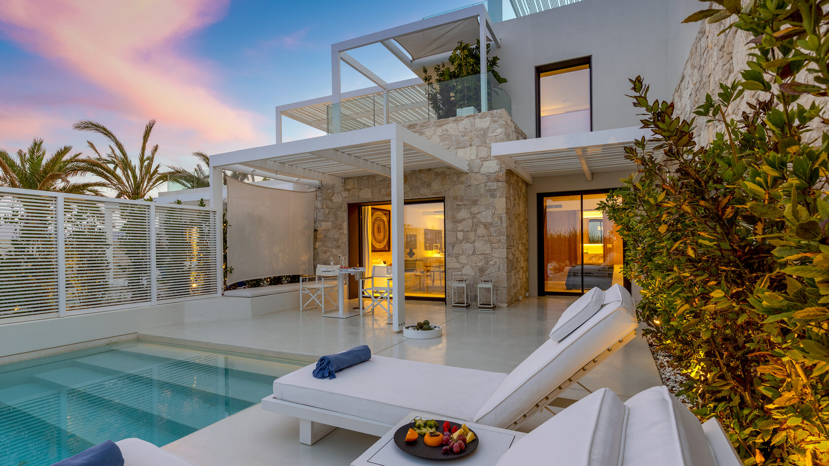 Την ειδυλλιακή εικόνα συμπληρώνουν μια σειρά από exclusive υπηρεσίες και facilities που απογειώνουν τη διαμονή. Εξωτερική θερμαινόμενη πισίνα μεγάλων διαστάσεων, υπαίθριο γυμναστήριο, πικ νικ στην παραλία μακριά από απρόσκλητα βλέμματα, ιδιωτικές συνεδρίες Pilates και Yoga, υπηρεσίες concierge 24X7, ηλεκτρονικές και ηλεκτρικές συσκευές κορυφαίας τεχνολογίας (π.χ. Dyson), Cocomat στρώματα, κλινοσκεπάσματα και λευκά είδη, συλλεκτικά amenities ολοκληρώνουν την εμπειρία.