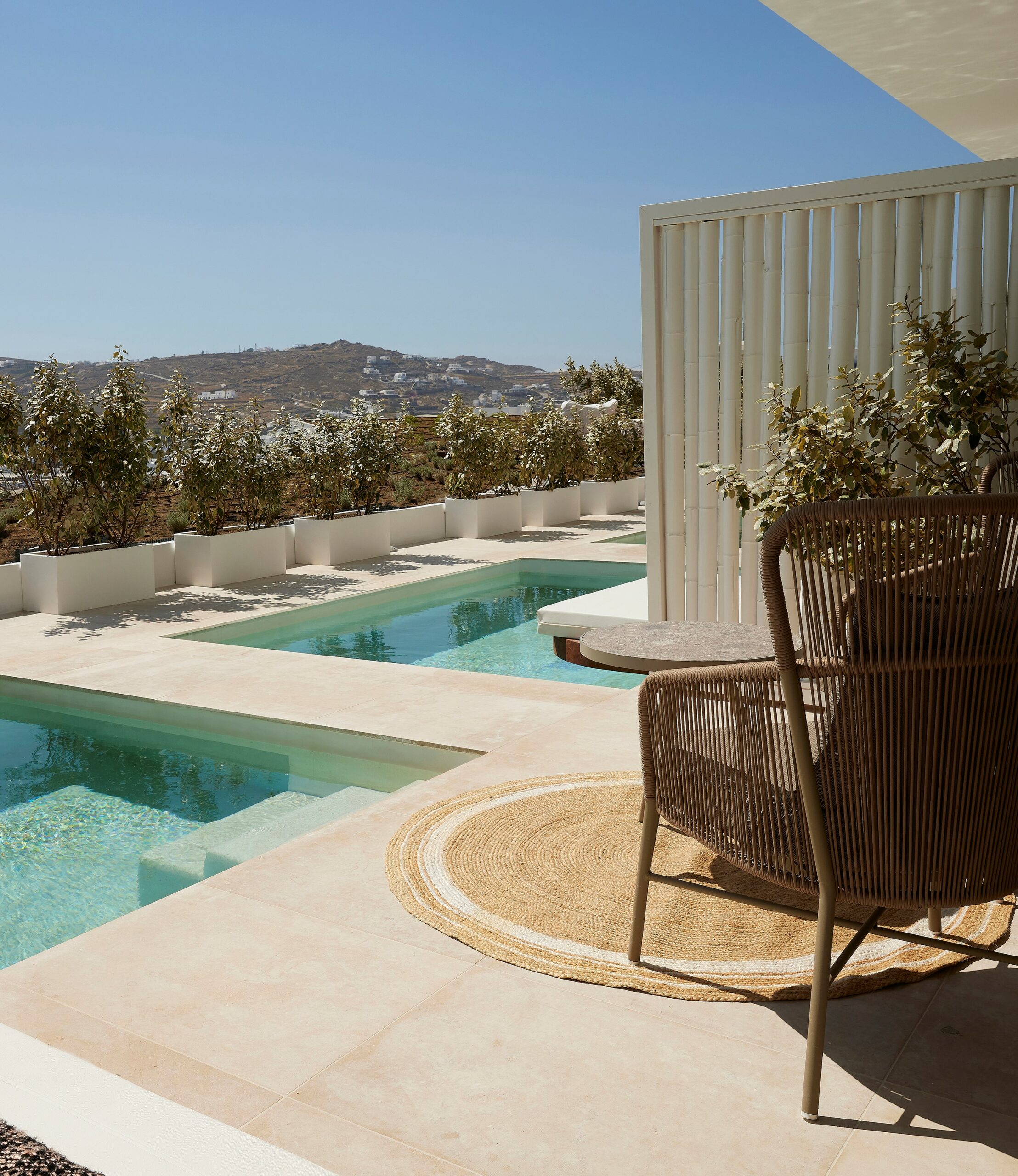 Το Once in Mykonos Designed For Adults, το οποίο διατέλεσε κάποτε το σπίτι ενός επιφανούς επιχειρηματία με επισκέπτες καλλιτέχνες, διανοούμενους και διεθνείς προσωπικότητες, σχεδιάστηκε εκ νέου ως μια υπερσύγχρονη ξενοδοχειακή μονάδα 5 αστέρων με την υπογραφή του αρχιτέκτονα Φοίβου Σταυρίδη των F Studio Designers. Εμπνευσμένο από τα μεγαλοπρεπή αρχαιοελληνικά αμφιθέατρα, το θέρετρο με τα 59 μοναδικής αισθητικής δωμάτια, συνδυάζει με δεξιοτεχνία την εντυπωσιακή αρχιτεκτονική και το παραδοσιακό κυκλαδίτικο στυλ του νησιού, με την boho μοντέρνα διακόσμηση, αποτελώντας το απόλυτο σημείο συνάντησης για jet setters και απαιτητικούς επισκέπτες που αναζητούν μια απαράμιλλη εμπειρία διακοπών. Ειδικά για τις μεγαλύτερες παρέες, το adults-only resort διαθέτει τρεις signature σουΐτες και βίλες δύο υπνοδωματίων με ιδιωτικές πισίνες, που αποτελούν την ιδανική πρόταση για ένα πριβέ κάλεσμα, όπως ένα bachelor/bachelorette weekend, ένα πάρτυ γενεθλίων ή ένα special occasion gathering, με bespoke room service περιποίηση και φόντο τη μαγευτική θέα του Αιγαίου.