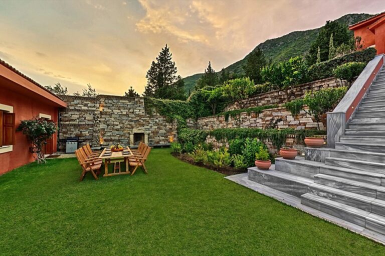 Η βίλα είναι χτισμένη σε μια έκταση 2 στρεμμάτων με μοναδική βενετσιάνική αρχιτεκτονική με καταπληκτική θέα Όπου και να καθήσετε μπορείτε να θαυμάσετε και τα δύο είτε παίρνοντας πρωινό στο όμορφο αίθριο, είτε χαλαρώνετε στην πισίνα ή και να οργανώσετε BBQ βραδιές στον καταπράσινο κήπο.