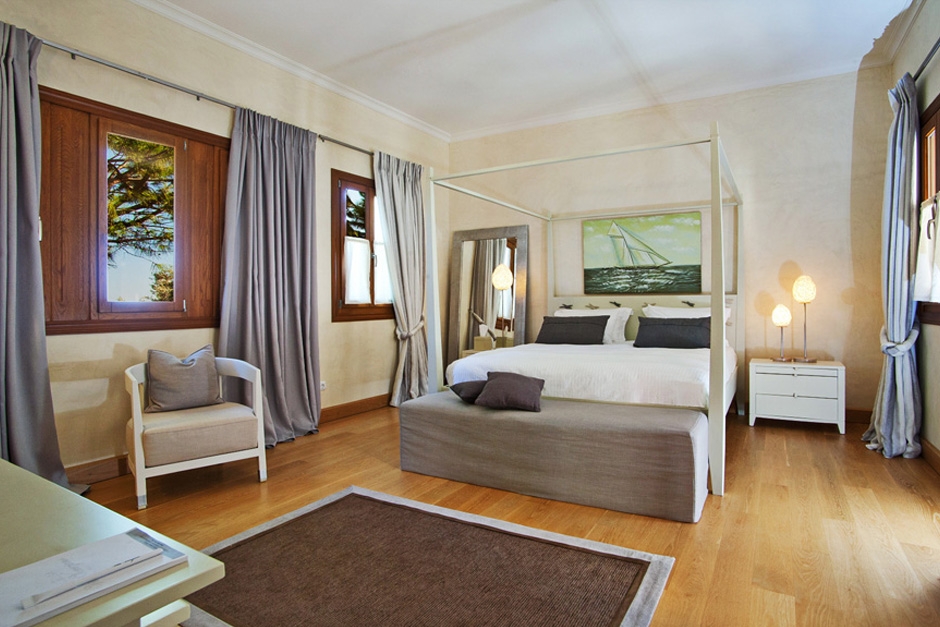 Μεγάλα παράθυρα και αψίδες μας οδηγούν, στον κήπο με το μπάρμπεκιου και στις σκάλες που οδηγούν στο χώρο της πισίνας με το γραφικό pool house.