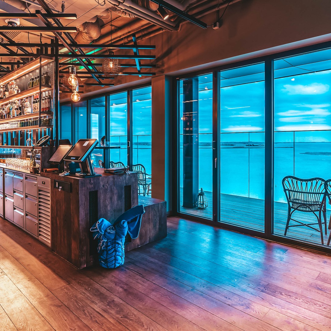 Κι εδώ το φιλικό στο περιβάλλον συνυπάρχει με το στυλ, κάτι που γίνεται ξεκάθαρο και στο Wind Sky Bar με τα εκπληκτικά signature cocktail και το άψογο σέρβις. H διακόσμηση στα 195 δωμάτια παραπέμπει σε μία cosy διαμονή.