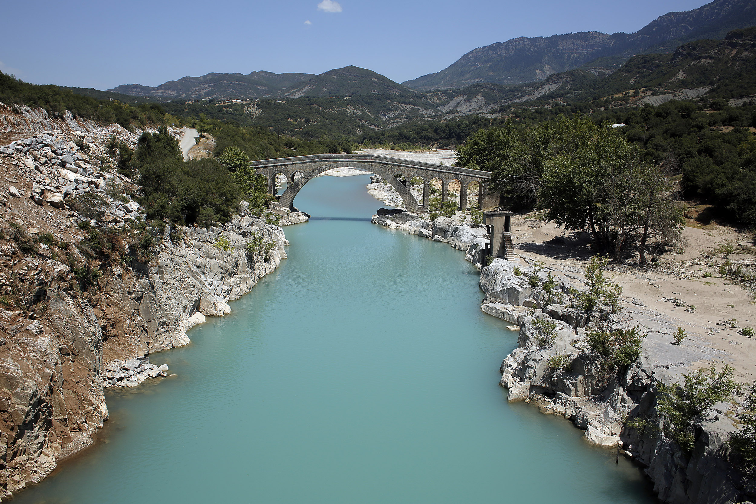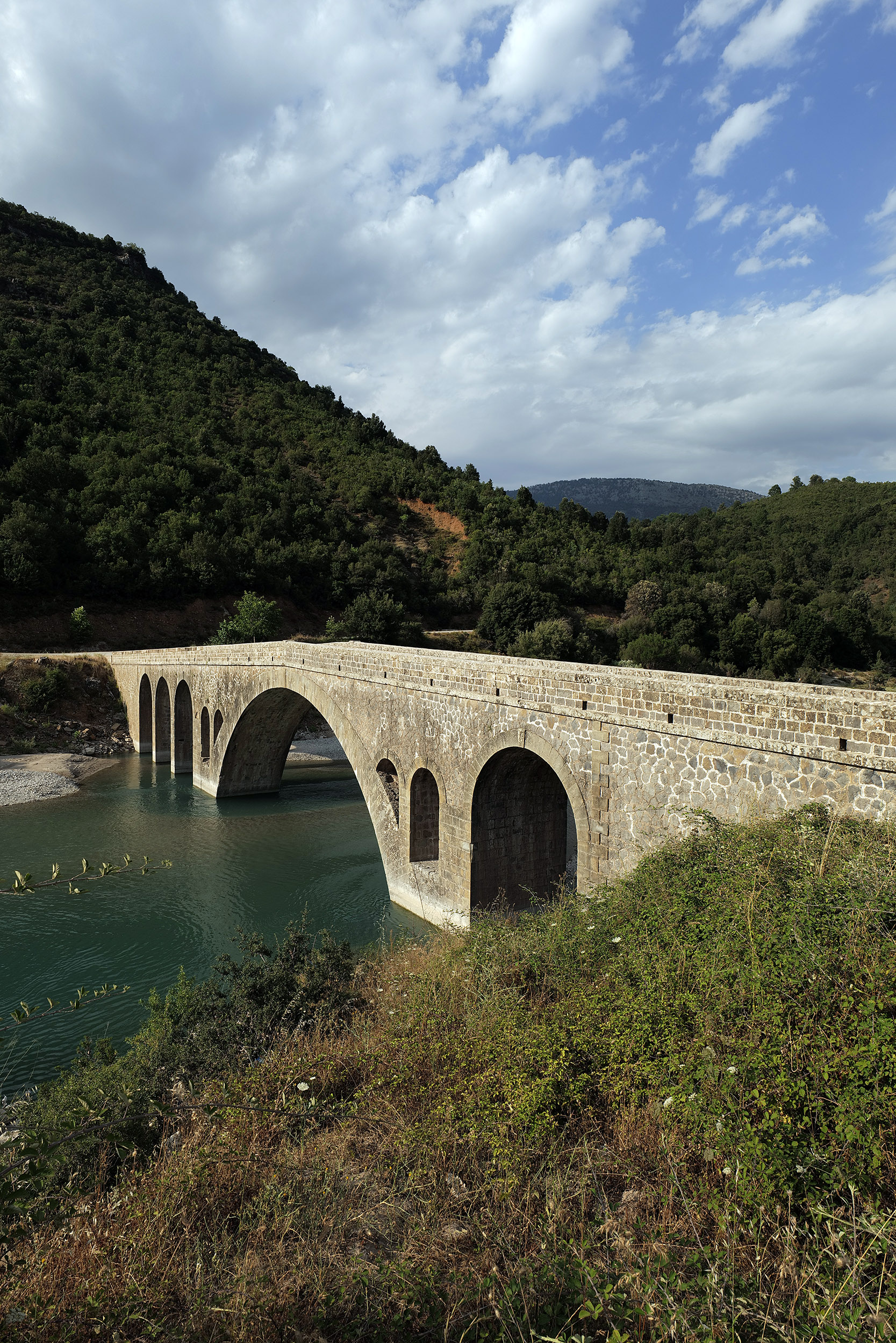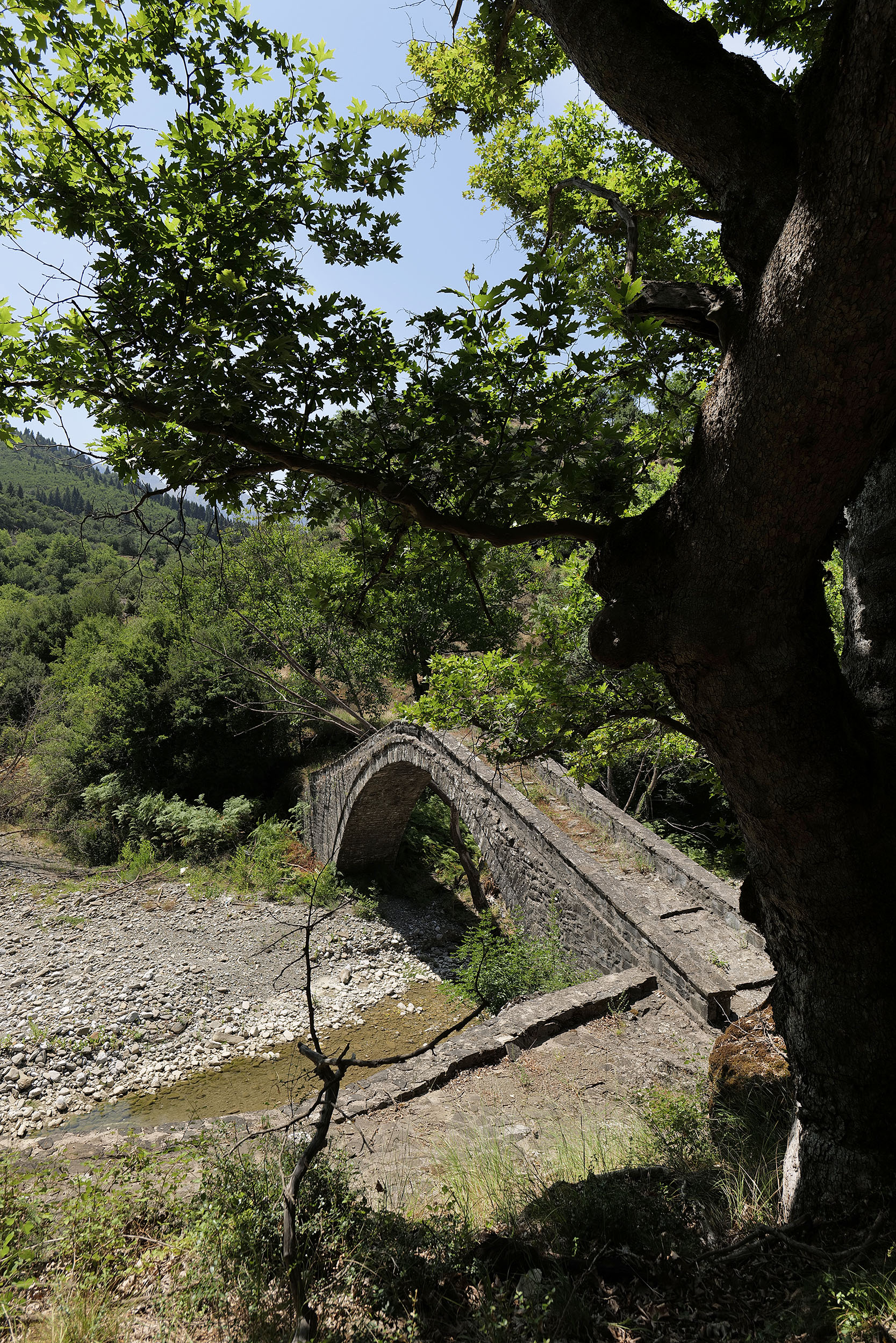 Τρίτη ημέρα κατά μήκος του Αχελώου, η οδήγηση στους στενούς δρόμους και τις στροφές έχει γίνει παιχνιδάκι και αυτονόητη συνθήκη. Πέτρινα τοξωτά γεφύρια, άλλοτε πρακτικά χρήσιμα, σήμερα υπέροχα αξιοθέατα, τονίζουν την ομορφιά του τοπίου, υποδηλώνουν την ιστορικότητα του τόπου και ενώνουν χωριά και περιοχές τις οποίες χωρίζει η γάργαρη, πεντακάθαρη ροή του ποταμού. Σε αρκετά σημεία το ποτάμι δημιουργεί κατά τόπους «αγκαλιές» με νερά πιο βαθιά μετατρέποντάς τις σε «παραλίες», όπου οι ντόπιοι αλλά και ανήσυχοι επισκέπτες στρώνουν πετσέτες και δροσίζονται στα γλυκά νερά του Αχελώου. Πάντα με σύνεση και προσοχή, καθώς η κίνηση των υδάτων δημιουργεί ρεύματα και δίνες αόρατα στο γυμνό μάτι αλλά όχι στον λειτουργικό νου.