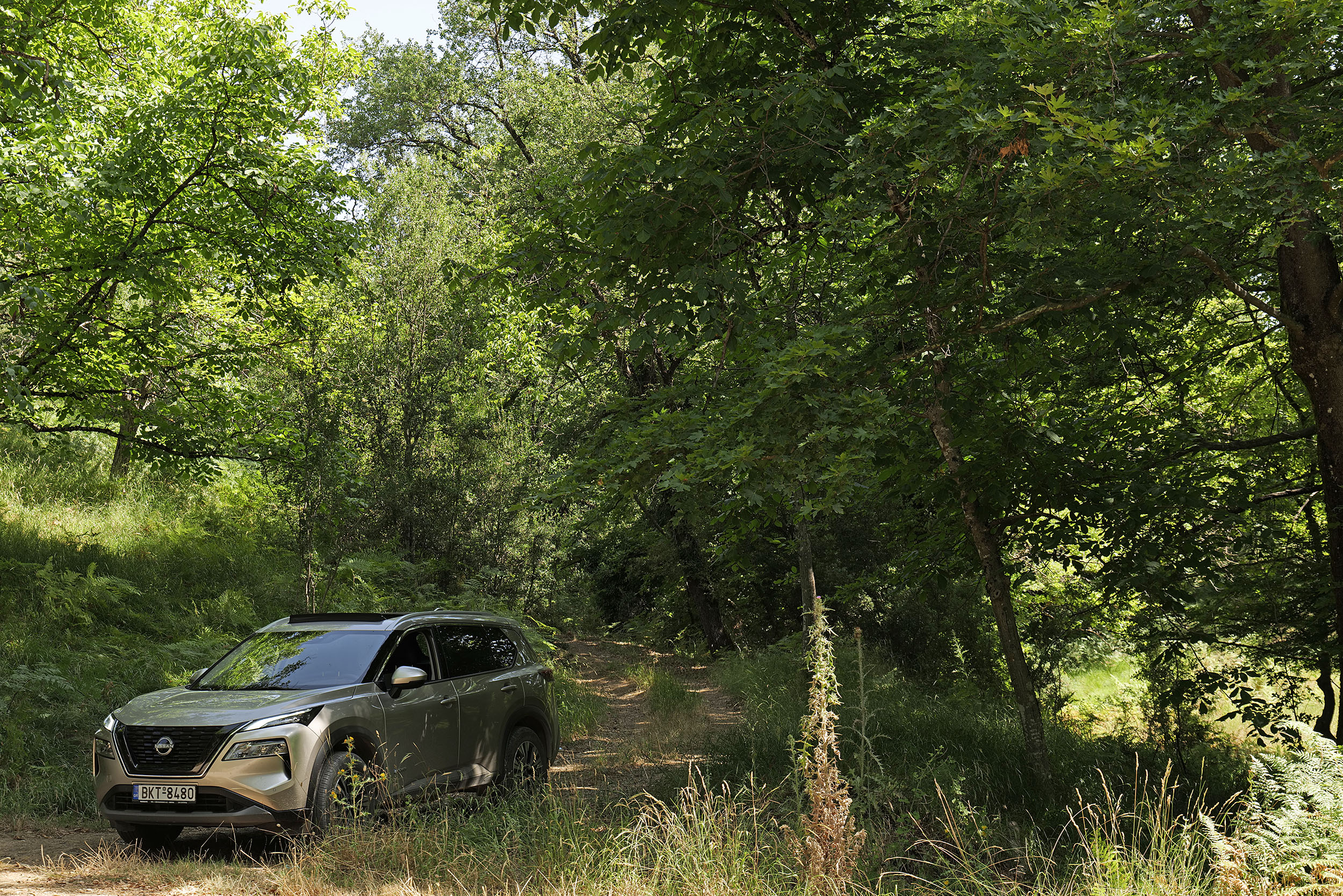 Το X-Trail είναι από τα οχήματα που σε κάνουν να νιώθεις σιγουριά από τα πρώτα κιόλας μέτρα που κινείται εκτός ασφάλτου. Η απόστασή του από το έδαφος ξεπερνά τους 20 πόντους και το προηγμένο σύστημα τετρακίνησης, που βασίζεται στο ηλεκτρικό μοτέρ του πίσω άξονα, εξασφαλίζει ότι κινείται σταθερά και με στιβαρότητα. Έχω επιλέξει μέσω του περιστροφικού διακόπτη του ταμπλό το πρόγραμμα οδήγησης Off Road (υπάρχουν επίσης τα Normal, Sport, Eco και Snow), οπότε ανηφορίζω με άνεση και παράλληλα έχω την ευκαιρία να «μελετήσω» το αυτοκίνητο. Η σχεδίαση του ταμπλό είναι κομψή και πρακτική, τα υλικά κορυφαίας ποιότητας, και το κάθισμα πολύ άνετο, ειδικά για κάποιον που ταξιδεύει σε τέτοιο δύσκολο τερέν. Η ρύθμιση της ανάρτησης είναι ένα ακόμη highlight του Nissan X-Trail, καθώς δεν υπάρχει ανωμαλία του οδοστρώματος που να προκαλεί προβληματισμό.