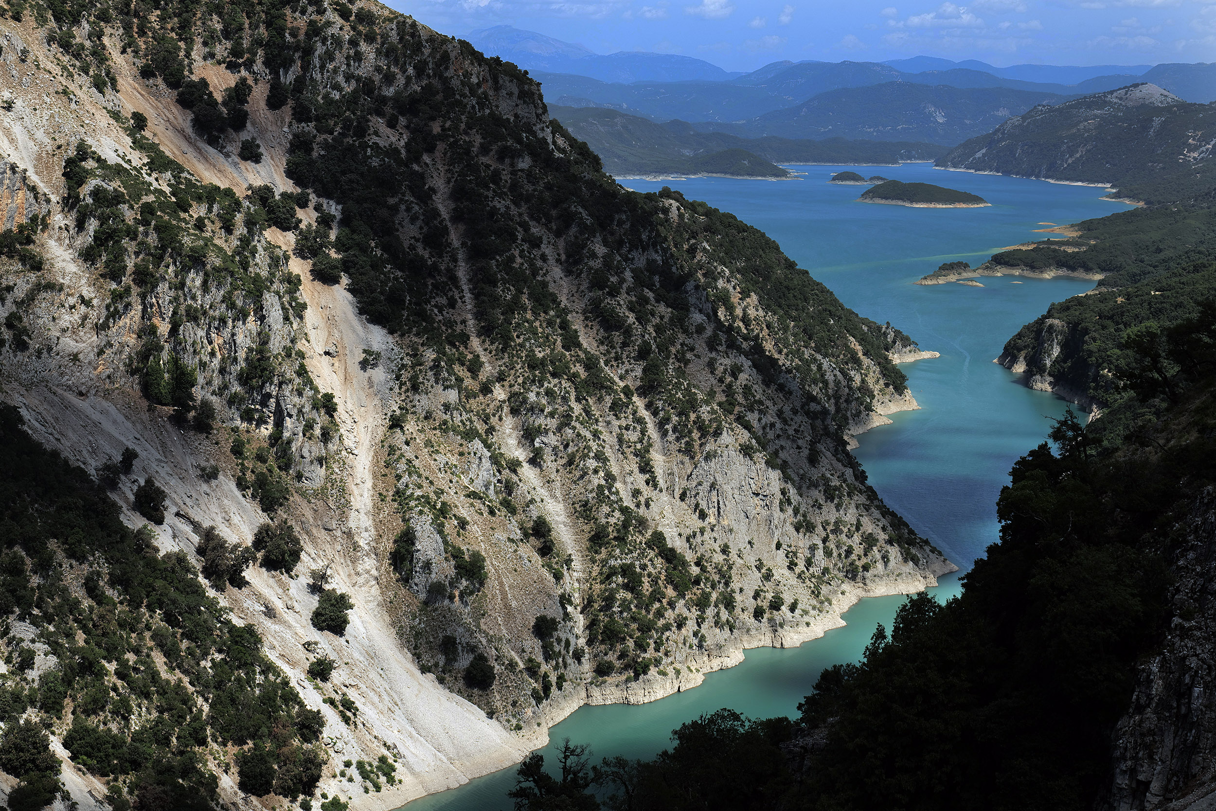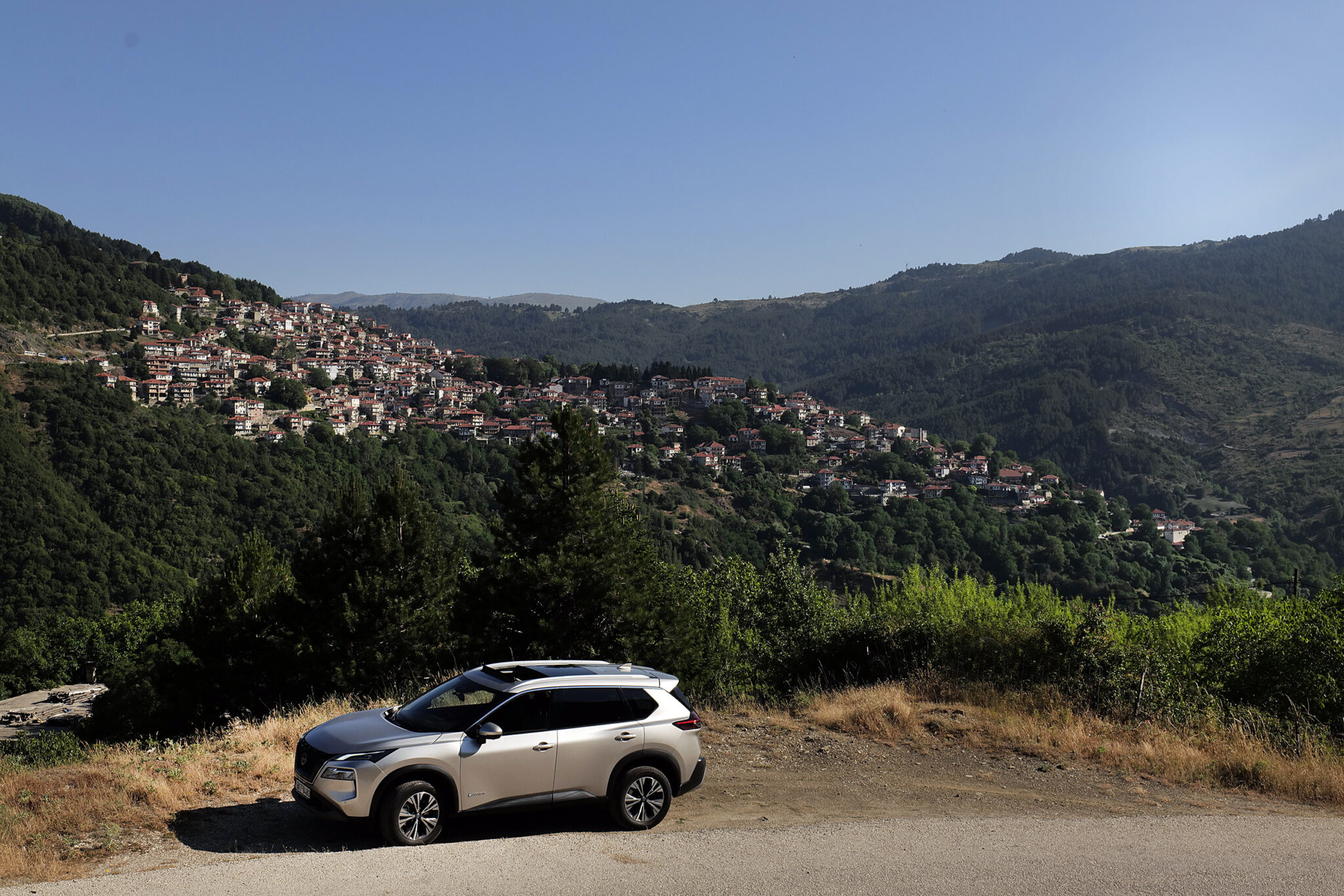 Το Nissan X-Trail ταξιδεύει άνετα στους αμφιθεατρικούς δρόμους πάνω από τα φιόρδ της λίμνης Κρεμαστών και η ανοιχτή ηλιοροφή αφήνει το φως του απογεύματος να γεμίζει την καμπίνα μαζί με φρέσκο αέρα μετά την πολύ ζεστή ημέρα. Οι υδάτινοι όγκοι των τεχνητών λιμνών δημιουργούν ένα τοπίο παράξενο με νησίδες αφύσικες, άλλοτε κορφές των λόφων οι οποίοι τώρα βρίσκονται κάτω από το νερό. Στη λίμνη Στράτου, η προπόνηση διεθνούς επιπέδου «θαλάσσιων» σκιέρ δημιουργεί εκπληκτικές εικόνες στην αντηλιά του απογεύματος. Απολαμβάνω το τοπίο χάρη στα μεγάλα και διαμπερή παράθυρα του αυτοκινήτου, που ξεχωρίζει και για την επιβλητική παρουσία του, με μήκος που φτάνει τα 4,7 μέτρα και ύψος 1,71 μέτρα. Αυτό μεταφράζεται σε άφθονο χώρο στην καμπίνα.