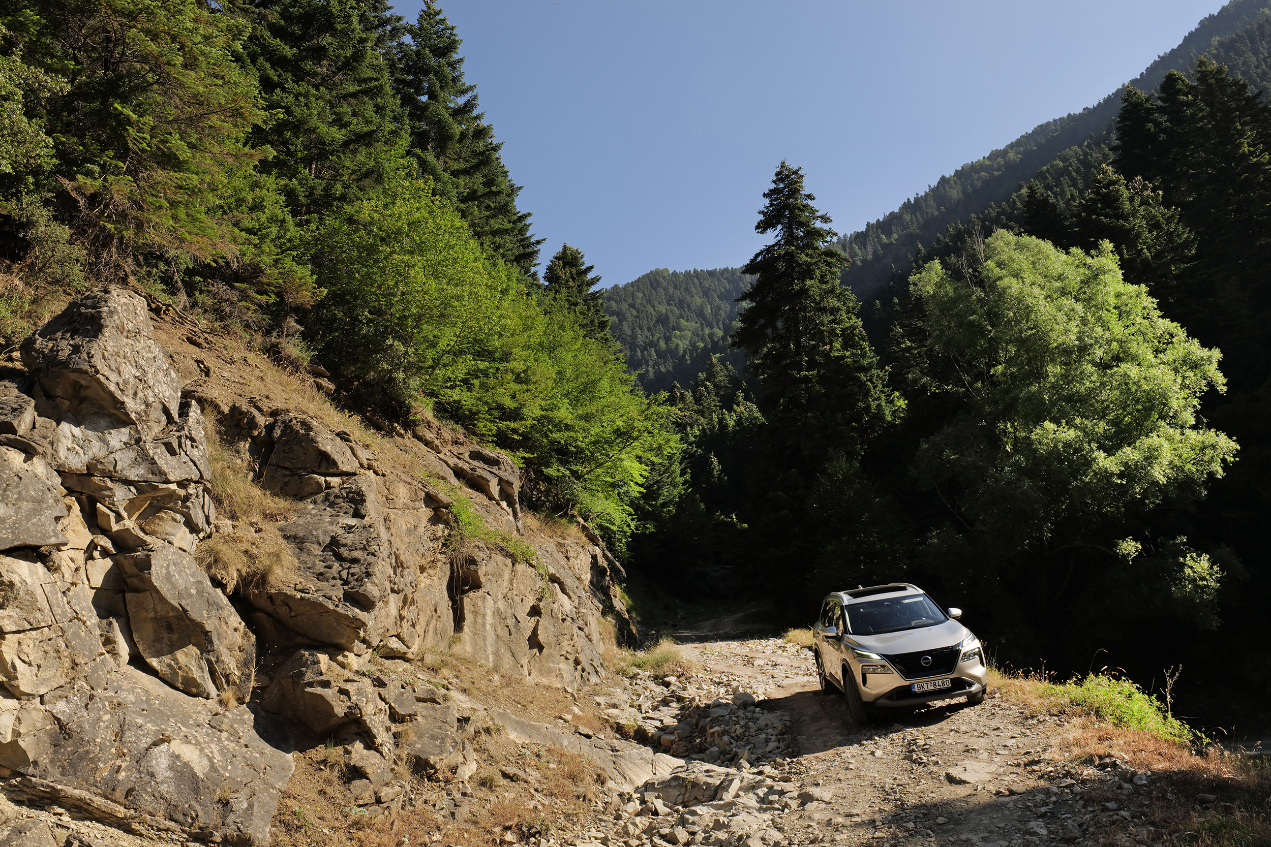 Έχοντας μπροστά μου πέντε ημέρες να ταξιδέψω κατά μήκος του Αχελώου από τις πηγές μέχρι τις εκβολές του στο Ιόνιο πέλαγος, το Nissan X-Trail είναι το ιδανικότερο όχημα για αυτήν την περιπέτεια. Οι ατέλειωτες στροφές προς τον τελευταίο οικισμό πριν από την ανάβαση στη Βερλίγκα, το ιστορικό Χαλίκι, το δυτικότερο χωριό του νομού Τρικάλων και της Θεσσαλίας, καθιστούν τη δύναμη και το αυτόματο κιβώτιο του όμορφου 4×4 απαραίτητα εργαλεία για να επικεντρωθώ μόνο στο δρόμο και στο απίστευτο τοπίο. Η ανάβαση μέχρι τους μαιάνδρους των πηγών, σε υψόμετρο 1975 μέτρων, με διαρκείς φουρκέτες και τη σκληρή πέτρα να κυριαρχεί στις άκρες αλλά και στον ίδιο το δρόμο, απαιτεί υπομονή και όχι βιασύνη, αλλά σύμμαχός μου είναι το αυτοκίνητο.