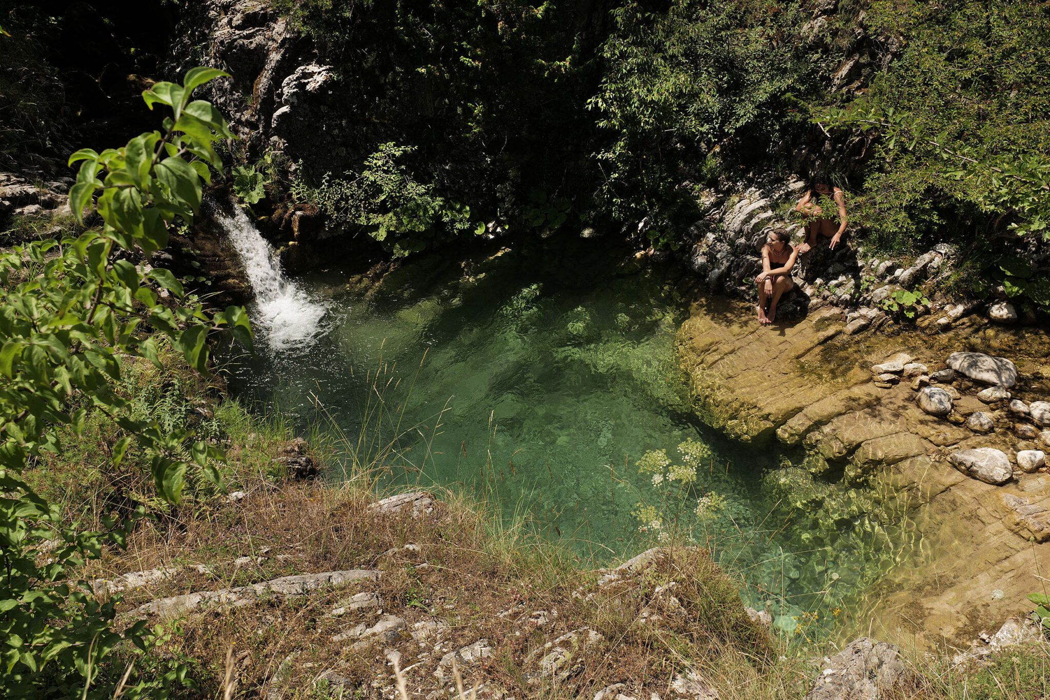 Είναι πολύ δύσκολο να αποφασίσει κανείς να κατηφορίσει ξανά και να αφήσει πίσω του αυτή τη σπάνια και άγρια φυσική ομορφιά με την ατέλειωτη θέα. Λίγο πριν την άφιξη και πάλι στο Χαλίκι και στη σκιά και τη φιλοξενία της μεγάλης πλατείας του, μια στάση στον καταρράκτη και την πρώτη βάθρα, φυσική πισίνα, στη θέση Ελατάκια, είναι μια παγωμένη αλλά ολόφρεσκη και αναζωογονητική βουτιά στην πεμπτουσία της Δημιουργίας.