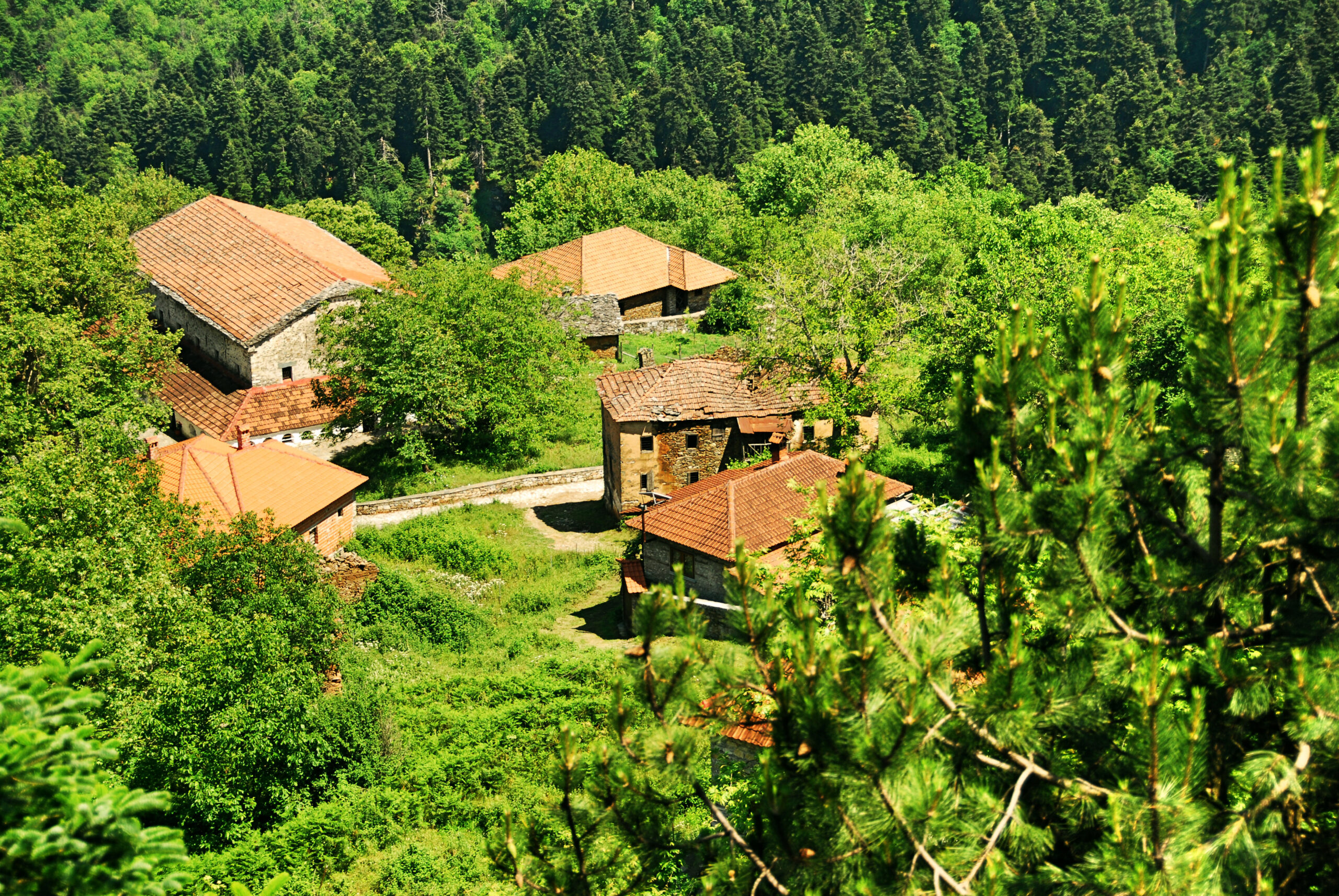 Αφήνουμε το αυτοκίνητο στην είσοδο του χωριού -δεν επιτρέπονται οχήματα εντός του οικισμού- και ακολουθούμε το κεντρικό καλντερίμι που οδηγεί στην πλατεία περνώντας από υπέροχα αναπαλαιωμένα κτίσματα. Όλα είναι φτιαγμένα από την πέτρα του Ολύμπου και είναι σκαρφαλωμένα σε πλαγιές που από τη μια πλευρά βλέπουν τις κορυφές του Ολύμπου και από την άλλη, τη θάλασσα. Το χωριό είναι γνωστό ως «το μπαλκόνι του Ολύμπου στο Αιγαίο». Τη μέρα που βρεθήκαμε εκεί ο ουρανός ήταν καθαρός, η θέα φτάνει μέχρι το 1ο πόδι της Χαλκιδικής, για να δικαιώσει τον χαρακτηρισμό του «μπαλκονιού».