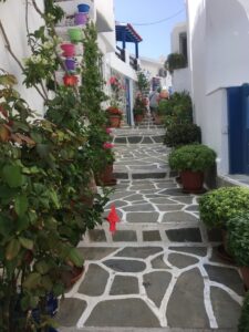 Περπατώντας στο κεντρικό καλντερίμι της Χώρας, ξεδιπλώνεται μπροστά σας μια ζωντανή εικόνα με καφετέριες, μικρά μπαράκια, ταβέρνες με τοπικές γεύσεις, παντοπωλεία, αλλά και καταστήματα με τουριστικά είδη και προϊόντα του νησιού.