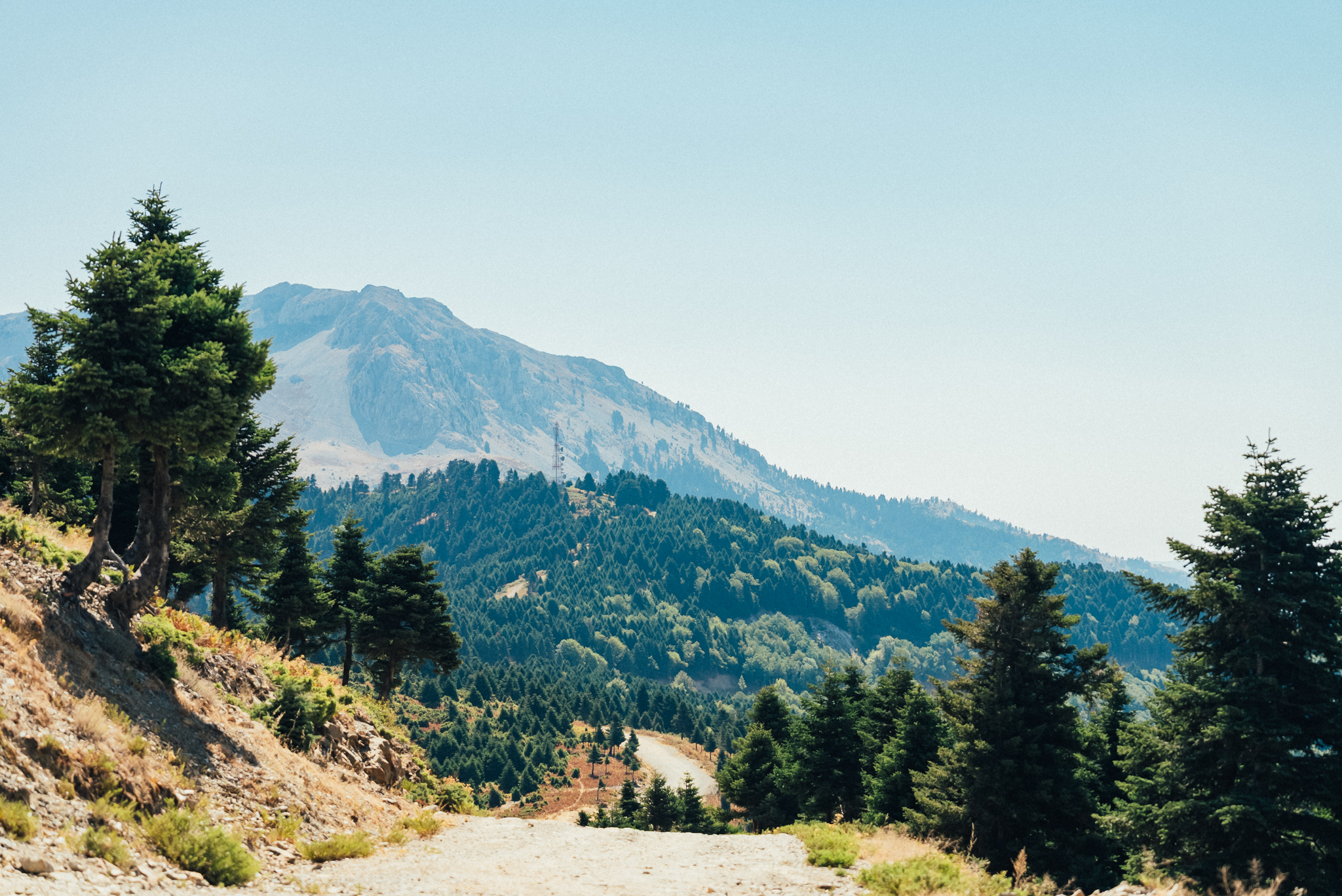 Από τη Στενή ανηφορίσαμε προς το καταφύγιο της Δίρφυος «Μιχάλης Νικολάου», ένα σημείο που βρίσκεται σε υψόμετρο 1.123 μέτρων, μέσω ενός αρκετά απαιτητικού χωματόδρομου που μας έφερε σε άμεση επαφή με την άγρια πλευρά του βουνού. Τα δέντρα αραιώνουν και το βλέμμα αγκαλιάζει ολοένα μεγαλύτερα κομμάτια της Εύβοιας και του Ευβοϊκού κόλπου. Χώμα και πέτρα κάτω από τις ρόδες, ουρανός και άνεμος στο πρόσωπο. Η Δίρφυς, με την κορυφή της να φτάνει τα 1.743 μέτρα, είναι το ψηλότερο βουνό της Εύβοιας και από τα πιο ξεχωριστά στην Ελλάδα. Σταματήσαμε αρκετές φορές για να απολαύσουμε τη θέα και να νιώσουμε την ατμόσφαιρα του βουνού που φημίζεται για τους δυνατούς ανέμους της, οι οποίοι καθιστούν την περιοχή απαιτητική για πεζοπορίες και γεμάτη προκλήσεις.