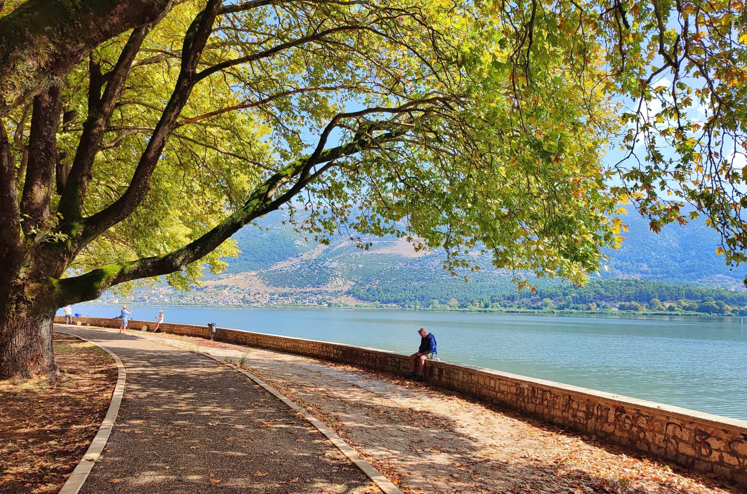 Το ίδιο απόγευμα, αποφασίσαμε να το περάσουμε περπατώντας στις όχθες μίας από τις ομορφότερες λίμνες ολόκληρης της Ελλάδας. Στα ήρεμα νερά της Παμβώτιδας, τα καραβάκια που κάνουν τη διαδρομή μέχρι το νησάκι και πίσω πηγαινοέρχονταν, μεταφέροντας τους επισκέπτες, ενώ το όρος Μιτσικέλι καθρεφτιζόταν στο νερό.